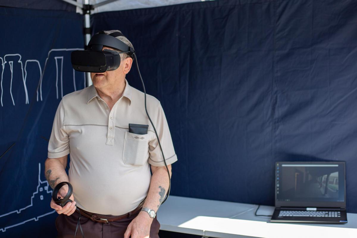 Virtual Reality is a full immersive experience, a computer generated simulation. By using a headset and hand controls, Virtual Reality can be used to allow people to walk though 3D virtual sites and interact with realistic replica models of real artefacts, and meet people from the past. The audience is taken back to a different time and place to interact with history in a seamless realistic and physical way. These experiences can include sound, visuals and haptics, and objects can be picked up and handled.