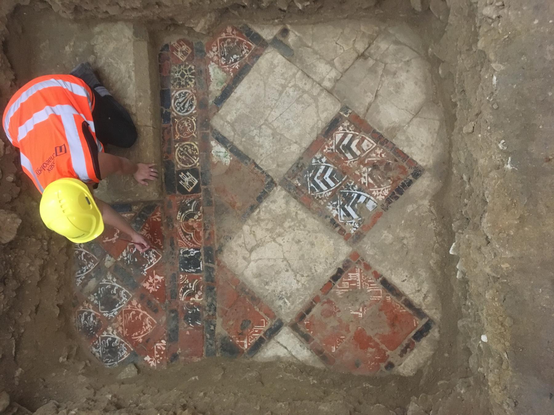 Excavations within the abbey nave revealed a beautiful early 14th-century tiled floor, which offered a unique glimpse into what the former Norman cathedral would have looked like. The brightly coloured tiles, which were likely laid on the orders of Bishop Droxford in the late 1320s, were found approximately two metres below the current floor level. Following detailed recording of the floor, including a 3D model, the team preserved the remains in situ, covering the floor with a protective membrane and a layer of inert sand.