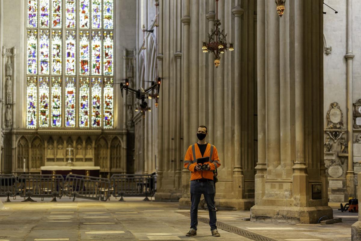 Above: UAV's enabled the team to capture Bath Abbey from a unique perspective, providing detailed photogrammetric records.