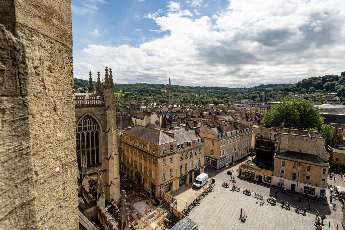 Above: Bath Abbey Footprint excavations and the view of Bath from the Abbey's heights