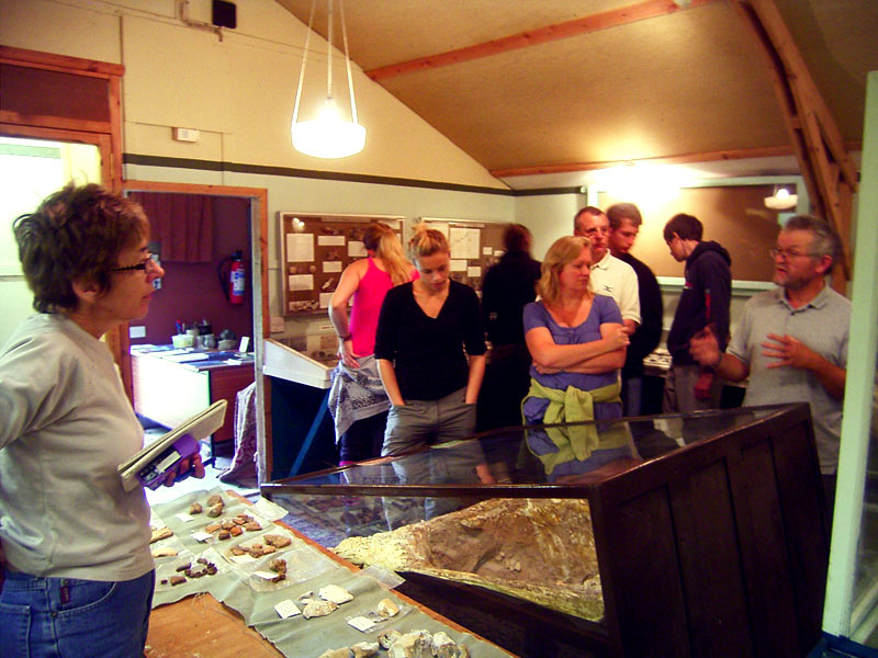 We began with introductions and a safety briefing from Wessex Archaeology’s Chris Ellis, who is running this year’s dig, after which Martin led the team on a short tour of the farm, familiarising us with the landscape and history of the area we’re working in. We then went to Martin’s museum to look at the type of things we are hoping to find. The majority of the finds in the museum have been found at Down Farm and include a stone slab with Neolithic engravings, a large and varied collection of worked flint and a human skeleton!