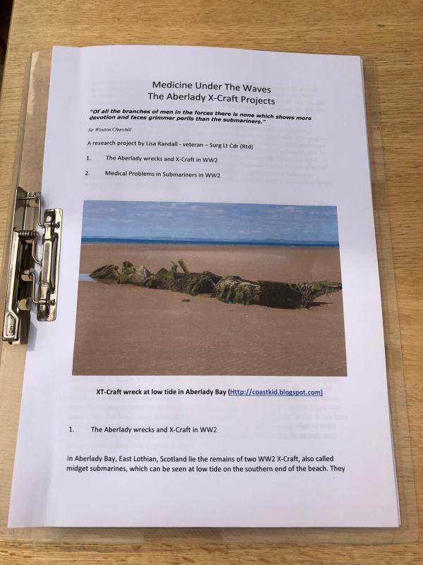 “My contribution was a fact-finding project on X-Craft which included visiting X24, the only surviving WW2 midget submarine displayed in the Submarine Museum in Gosport. It gave me a sense of the size and internal structure of the Aberlady X-Craft wrecks we were investigating. In addition, I conducted a literature review of published research into the medical problems experienced by British submariners in WW2. It was fascinating – not surprisingly life onboard a WW2 submarine was hazardous! My report has been added to the archive in the Institute of Naval Medicine, Gosport. It was a great to be part of The Aberlady X-Craft Projects team. It came at a time of isolation and loneliness during the COVID lockdowns of 2020/2021 and the project kept me busy, engaged and mentally stimulated which increased my self-confidence and self-worth.” - Aberlady X-Craft project volunteer
