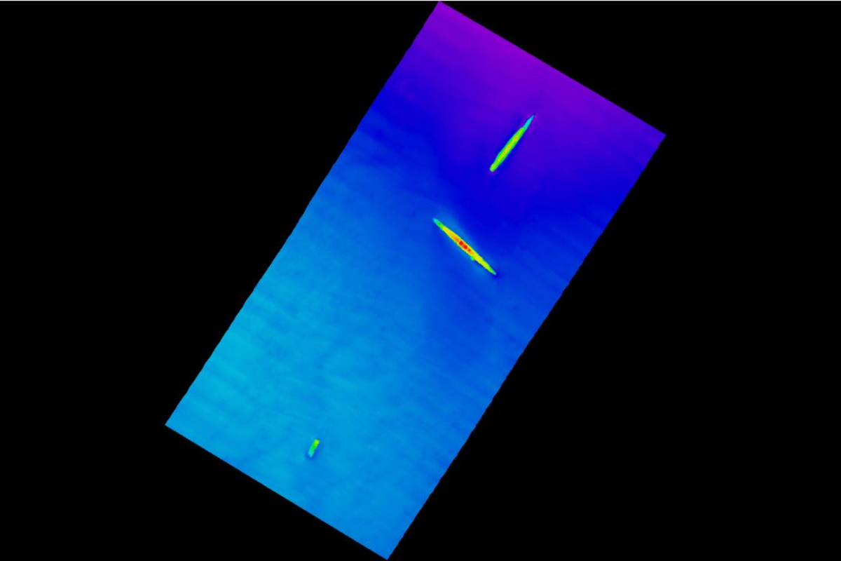Above: multibeam image showing the K-Class submarine wrecks (Copyright Wessex Archaeology)