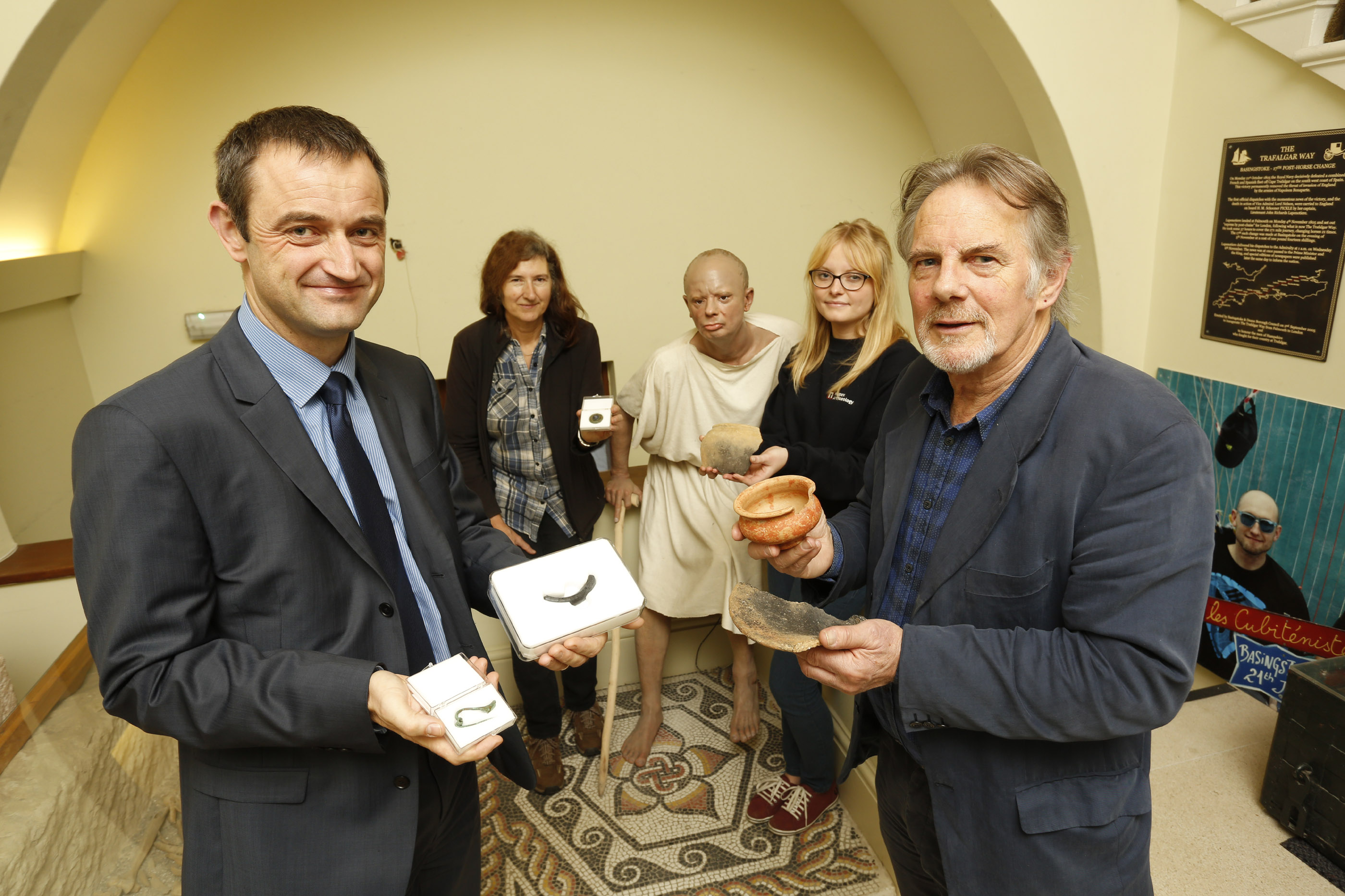Lorraine Mepham and Catherine Coates from WA, and David Allen (right) from Hampshire Cultural Trust, were on hand to show the finds to Simon Kirk (left) of David Wilson Homes. Many photographs were taken, including some of the group arranged around a life-size model of the occupant of a Roman sarcophagus, rather disconcerting as he relates his life story! Thanks to David Wilson Homes, who as well as funding the excavation of Marnel Park and part-funding the publication, which also includes the adjacent site of Merton Rise (available to download from the WA website), have signed the necessary transfer of title, the archive will now be safely curated at the Hampshire Cultural Trust’s store in Winchester.