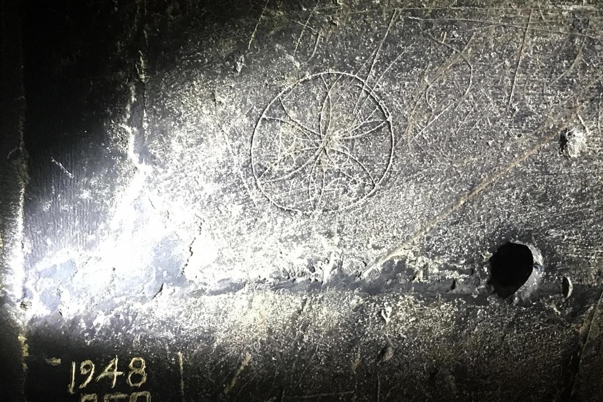 During the recent excavations at Bath Abbey, as part of the Foot Print Project, the team noted the presence of Apotropaic marks carved on the building’s fabric. Apotropaic marks were used to protect buildings from evil spirits and witches; the word comes from the Greek term ‘apotropaios’ meaning ‘averting evil’. They are relatively common in Religious Houses, often taking the form of geometric patterns − and are very distinct from Masons Marks and graffiti which are often seen carved into historic buildings.