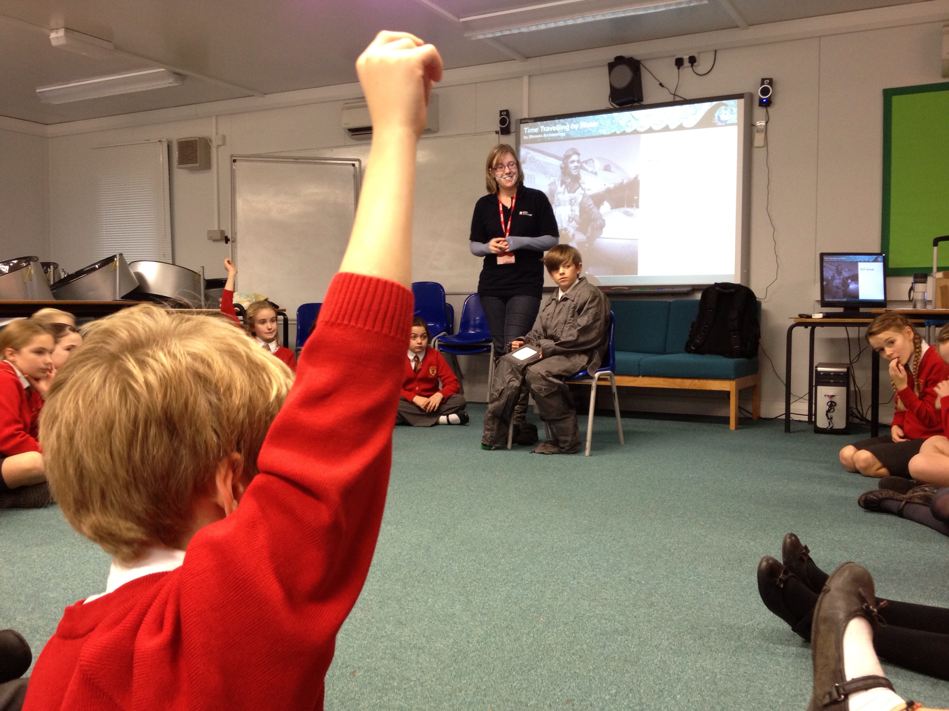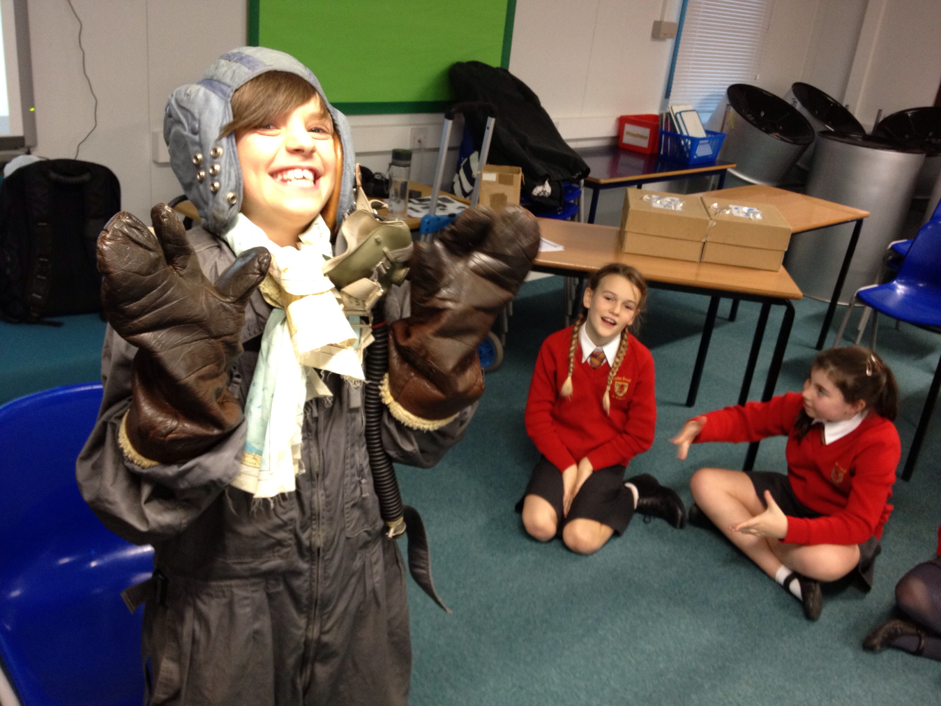 One lucky pupil from each class donned an authentic aviator’s suit. The class discussed the different parts of the uniform, including a scarf map, knife tied to the suit with a string and woolly gloves.