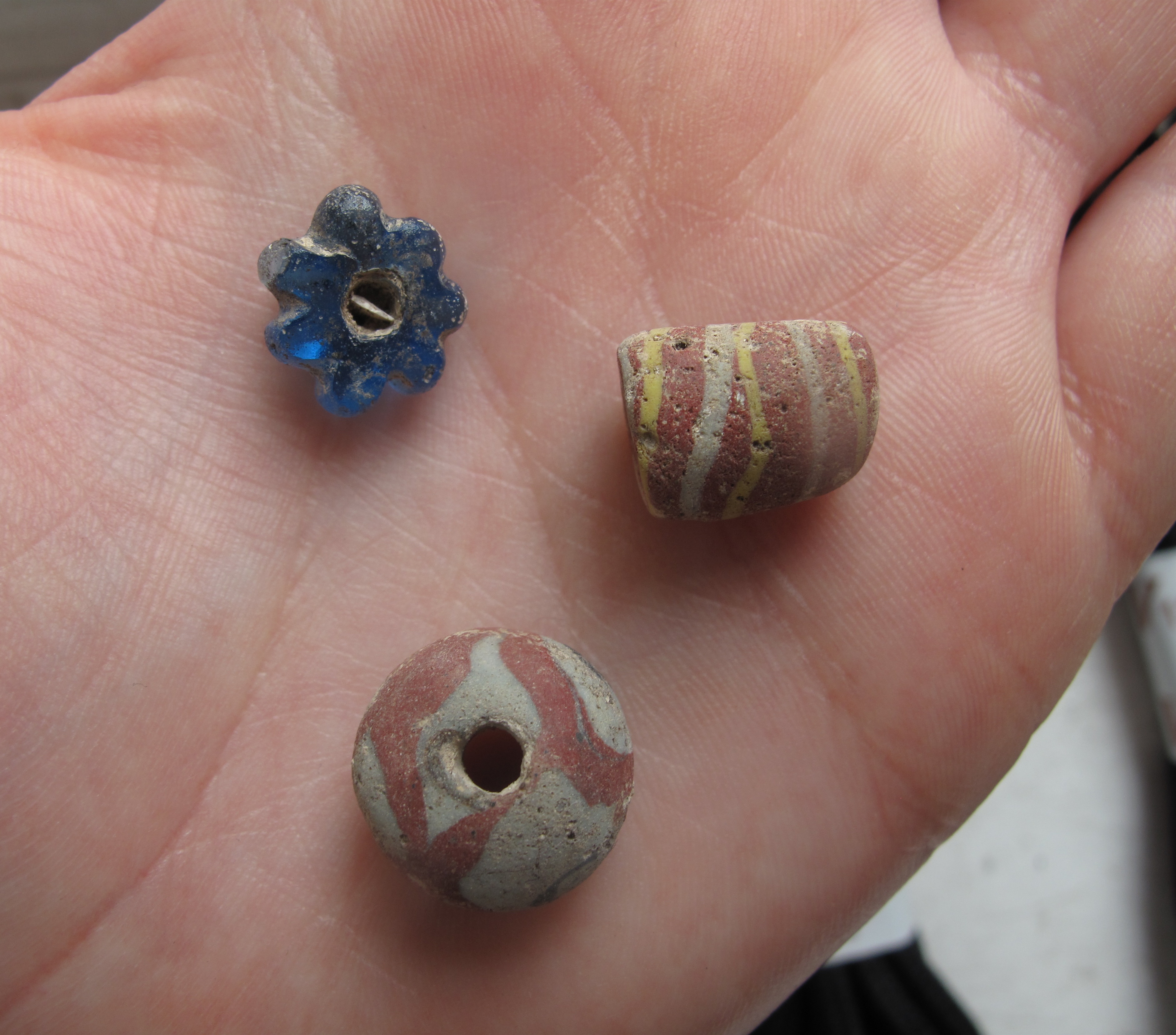 Amongst the other finds there was the usual range of weapons, including spearheads and shield bosses. Another pair of saucer brooches was uncovered and there was a fourth example of an Anglo-Saxon woman buried with a Roman brooch. It also proved to be a very good year for beads, particularly glass, with a range of shapes, sizes and colours found with three of the female burials.