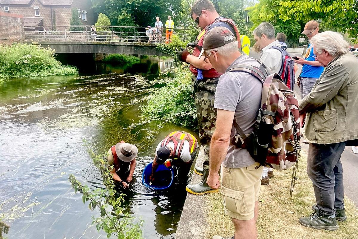 Above: Working with the Fisheries team from the Environment Agency to migrate fish in the River Avon