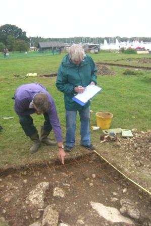 Two of the volunteers also tried their hand at some recording, painstakingly drawing the detail in one of the test pits and learning the joys and frustrations of using a planning frame.