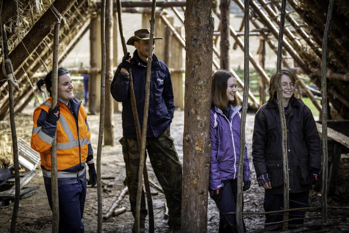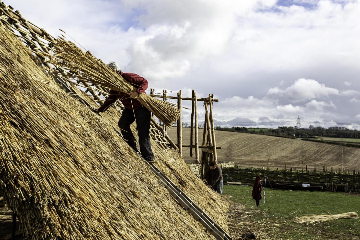 Members of staff from Wessex Archaeology enjoyed wellbeing days on site at Butser during the building of the house, learning ancient skills from Butser staff and volunteers such as thatching and wattling.