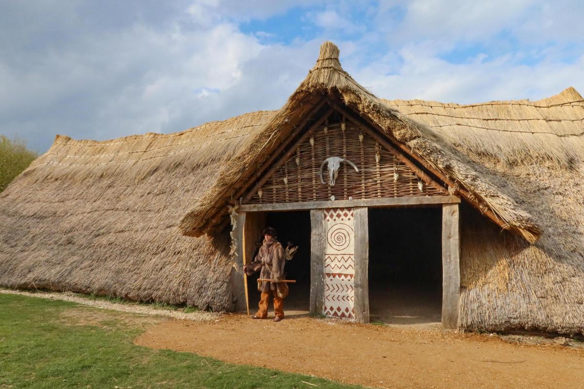 The new building is a reconstruction of the remains of one of the most important Neolithic stone age houses to be unearthed in the UK which was found at Horton in Berkshire in 2012 by Wessex Archaeology.