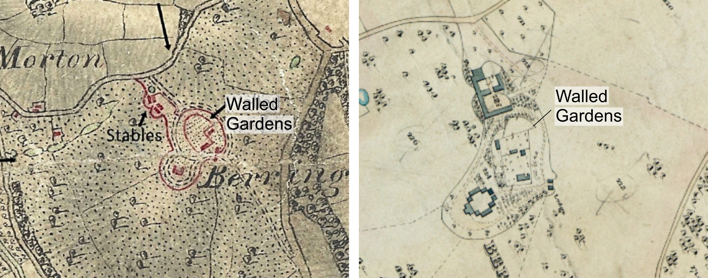 Looking at all of the evidence, we still think its most likely that the curved wall is an original Brown design and the rectangular wall is later. Geophysics, old maps and even remains in the ground can sometimes be misleading and it’s up to us, the archaeologists, to make a decision. Perhaps you disagree… some old maps and photos are included here, what do you think?