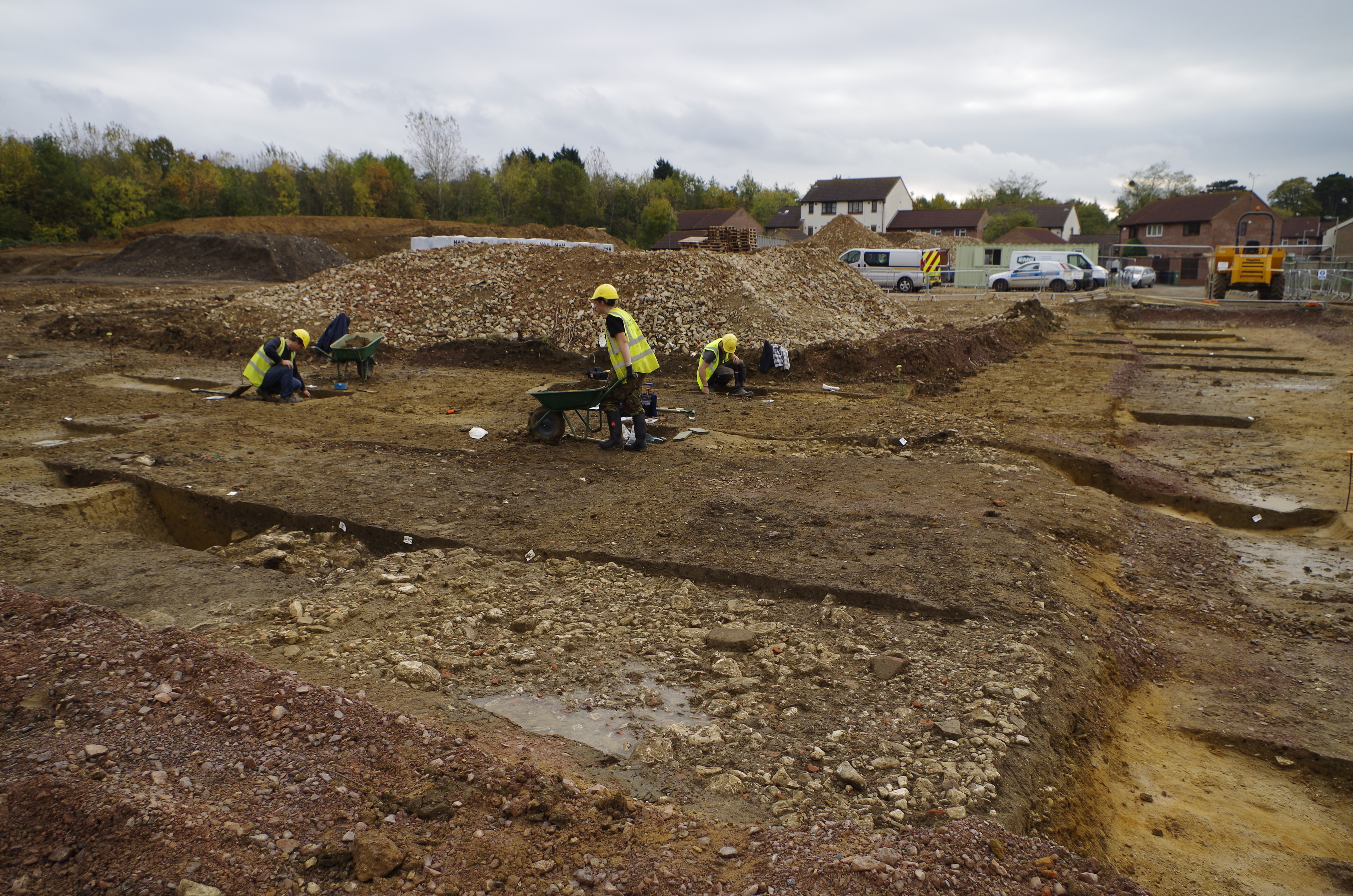 An excavation by Wessex Archaeology West in Hucclecote, Gloucester sought to establish whether a site at the Hucclecote Centre, in Chuchdown Lane had some relationship with a known Roman villa to its north. The villa, excavated in the early 20th century, was dated to c. AD 150 but was probably still occupied in the early 5th century, and appeared to sit within a well-established Romano-British landscape.