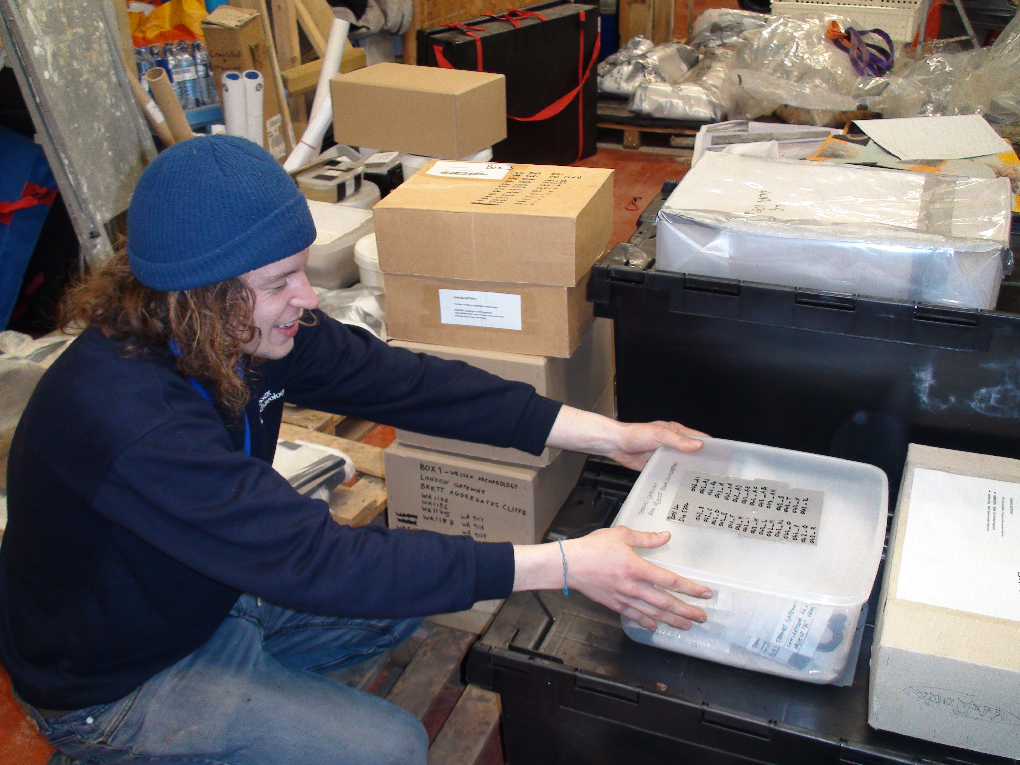 So it’s about time that I posted an update on what I have been doing here at Wessex. For the past couple of weeks I have been given a full refresher in object recording. With large numbers of finds from the London Gateway dredging project due to be leaving for their respective museums, a variety of finds needed recording using various techniques. I was given the responsibility of selecting the best methods to record each find based on my own judgement. Some finds were drawn, measured, photographed and were recorded through photogrammetry, while others just needed a basic timber record and photograph. Finds drawing, measuring and photography is nothing new to me, but photogrammetry was something I’d not done before. It took me several attempts and a little bit of assistance from other staff within Wessex Archaeology to get it right, but I would now say I am confident to produce 3D records of objects. The sheer number of finds and the assortment of materials that I had to deal with made it a true hands on learning experience. Now the next stage begins – packing. All of the finds destined for museums now have to be properly packed and prepared for their journey with the advice of Lynn Wootten, our resident conservator.