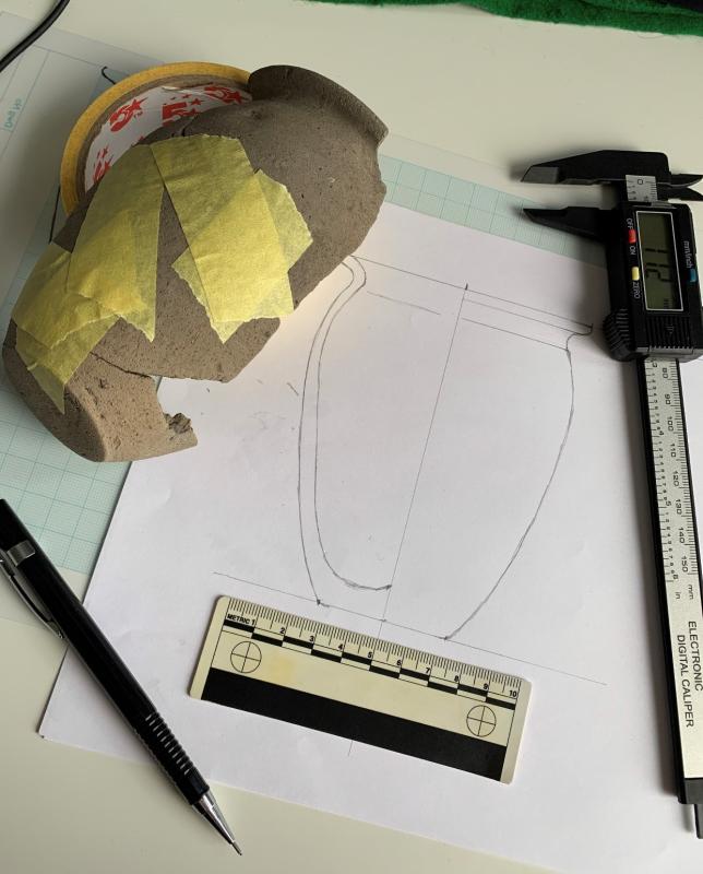 I am now finishing all the pencil drawings of the selected vessels. The pottery is drawn in scale 1:1 as it is a lot easier for the illustrator, and then I will reduce them later to 1:3 or 1:4 using the computer before the final presentation.