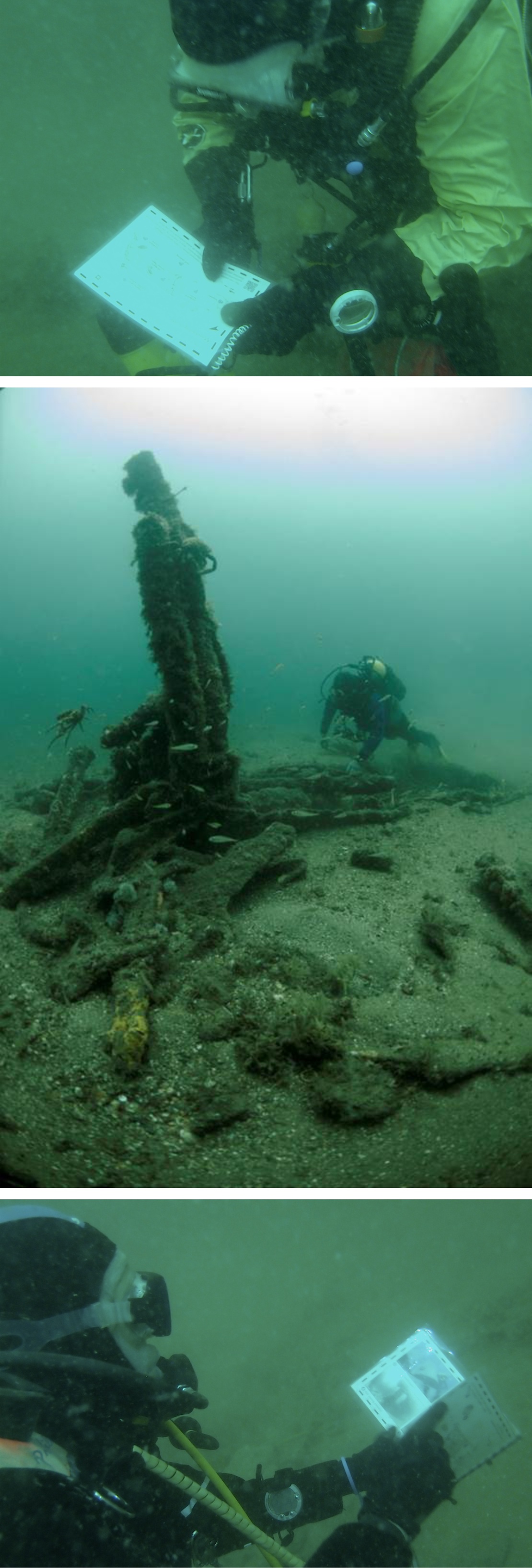 Today, there are still considerable remains of the steamer on the seabed with two sets of twin boilers and the engine visible. Sometimes the outline of the hull can be seen, but that depends on the sediment levels. That is one of the reasons why English Heritage commissioned Wessex Archaeology last summer to create a dive trail for this designated wreck. It is known that the sediment levels change over time, but it is not known whether this is a seasonal effect or whether major changes are happening on the site. Either way, these changes could be detrimental to the wreck.