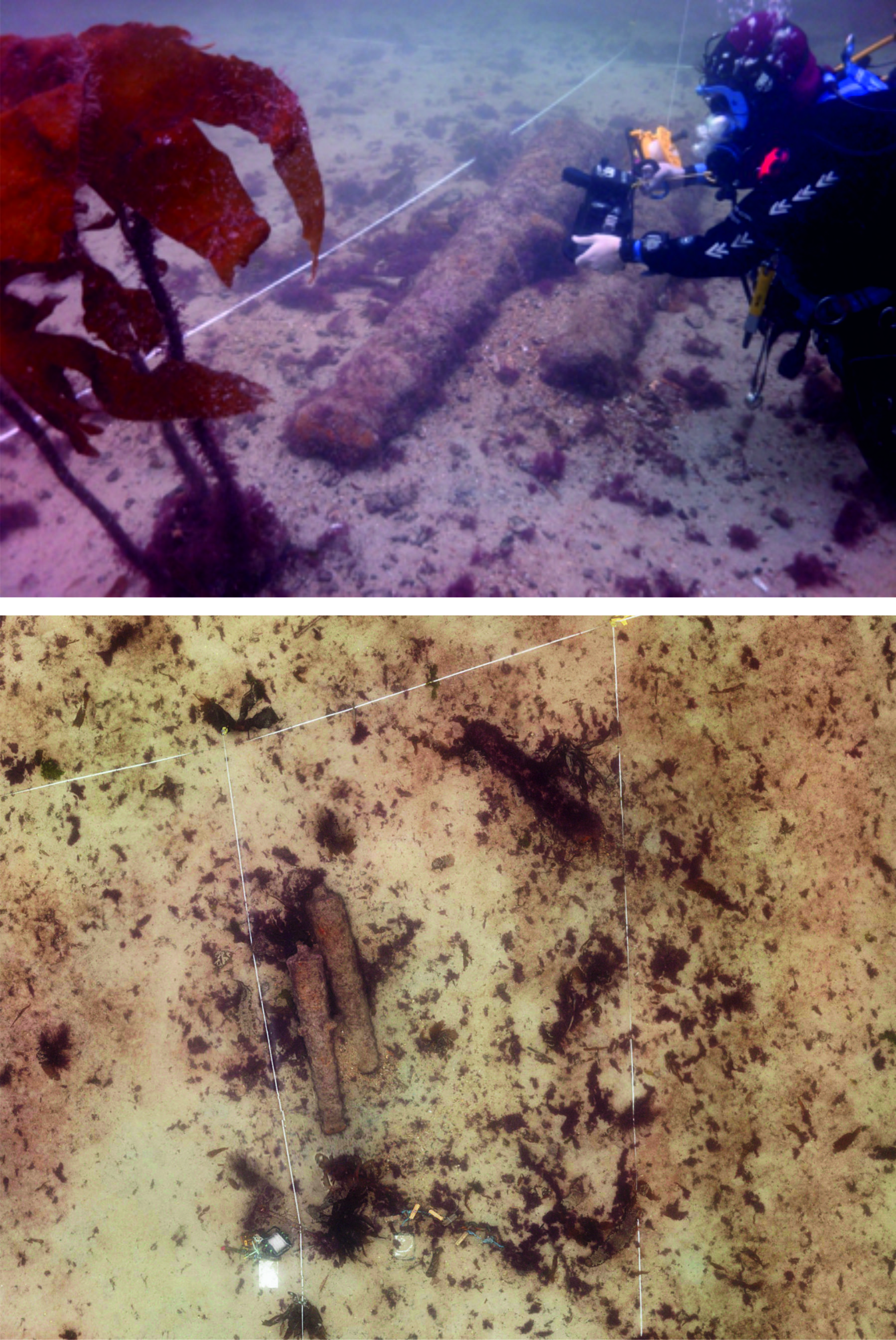 The ‘Drumbeg wreck’ a 17th-18th-century shipwreck, was discovered by Ewen Mackay and Michael Errington while scallop diving near the village of Drumbeg in December 2011. Historic Environment Scotland (Historic Scotland at the time) commissioned Wessex Archaeology to survey and record the interesting remains in 2012. The site consists of two anchors and three concreted cannon! Underneath these artefacts Wessex Archaeology even discovered a well preserved section of the hull!