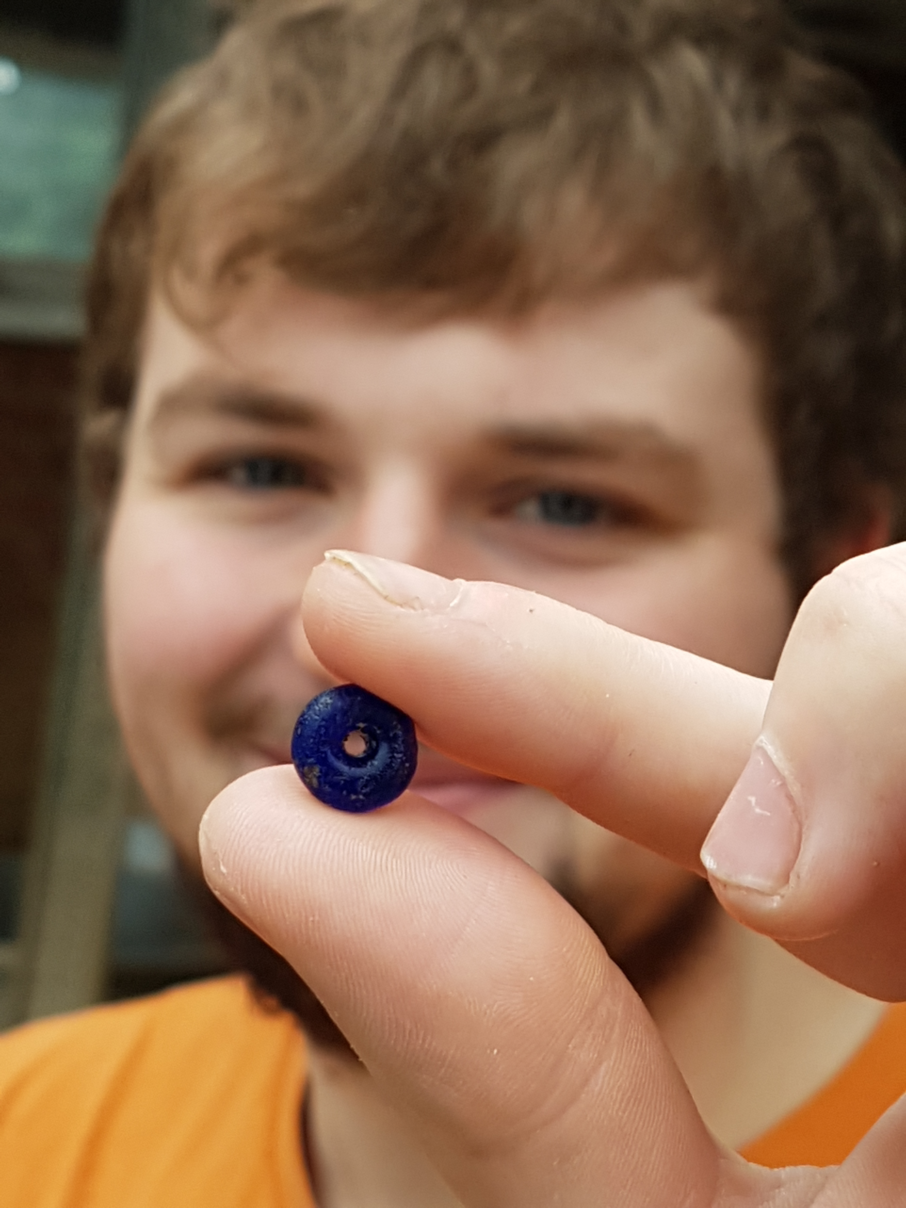 Nate recovered the glass bead (pictured) during processing of a soil sample taken from the skull cavity of one of the many 7th-8th century Saxon graves at the MOD site in Bulford.