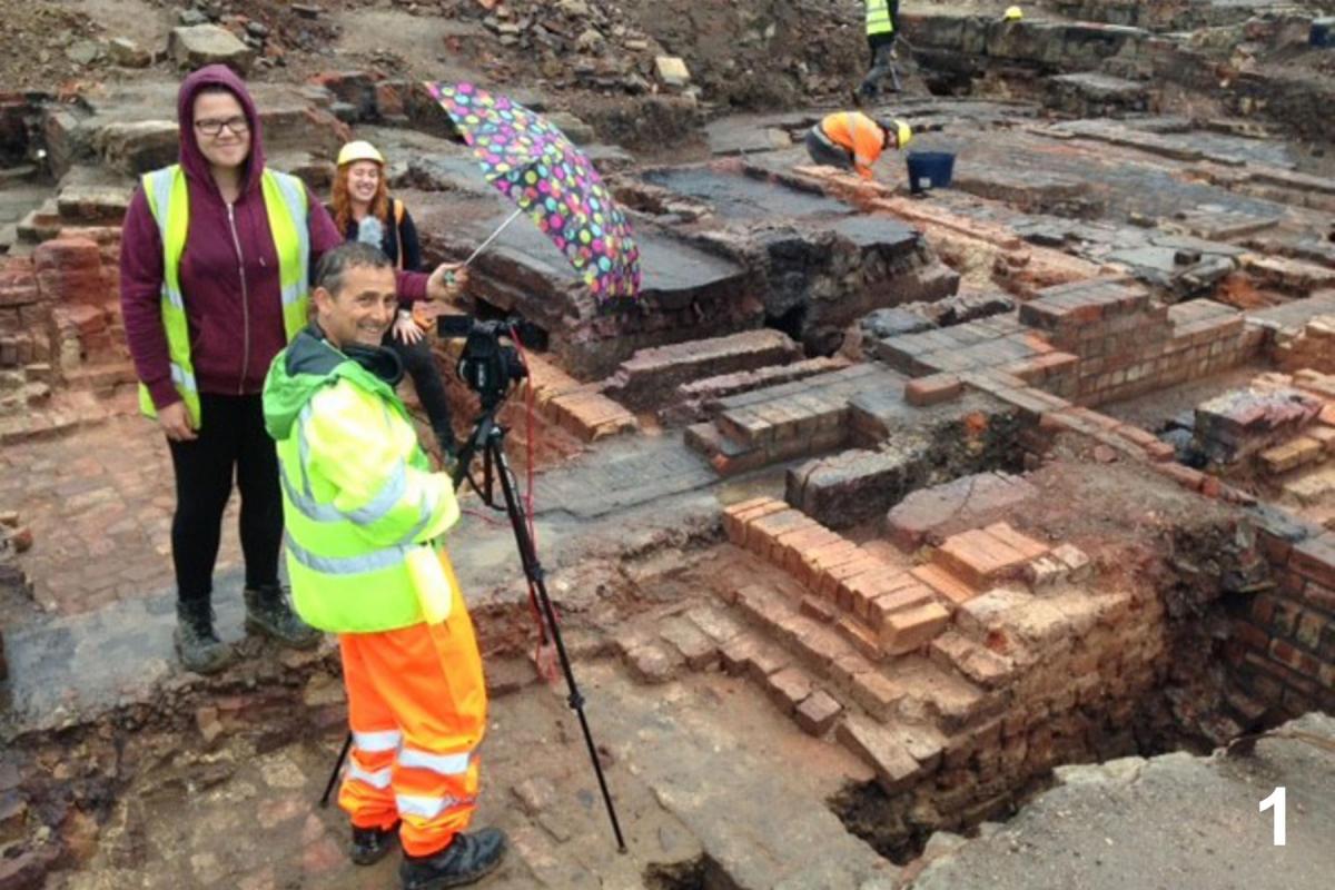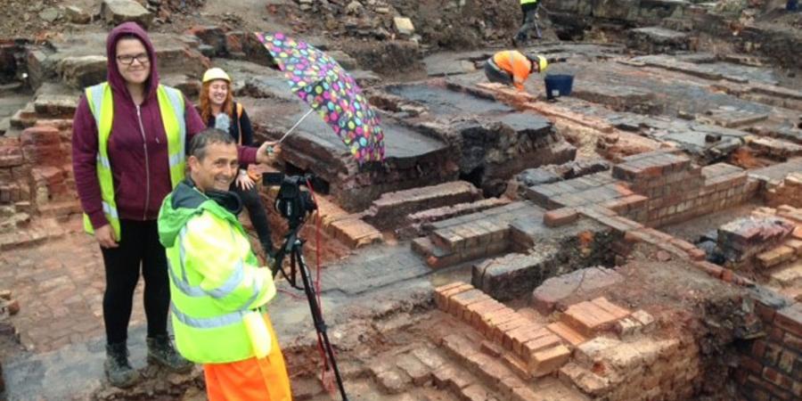 Sheffield wears its identity as the ‘Steel City’ with pride, and the opportunity to explore the industrial past that gives our seven hills its namesake was taken up with avid enthusiasm by the media and public alike. At Hollis Croft, we started off with in-house filming from Wessex Archaeology's film crew of one, Rob Goller, (pic. 1) who began our visual archive of the cementation furnaces and interviews with our very own women of steel, Mili Rajic, Project Manager and Emma Carter, Site Supervisor. The complex industrial landscape at Hollis Croft was artfully unpicked and explained into Rob’s camera which gave both Mili and Emma a chance to warm up before ITV, BBC Look North, BBC Radio Sheffield and The Sheffield Star came to do interviews later that day! (pic. 2).