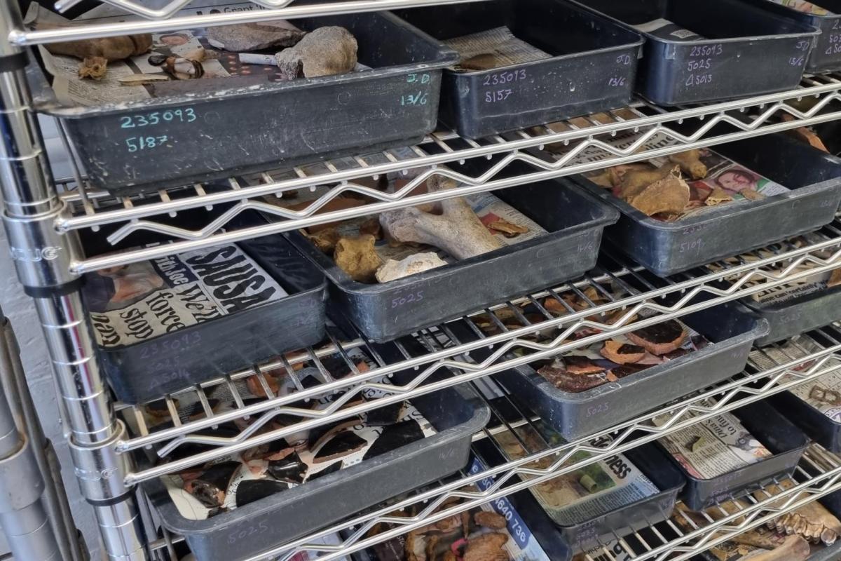 One of the first tasks of the week, usually completed on a Monday, is tracking. This involves cross-referencing the finds bags against the tracking forms, noting the range of artefacts sampled and recording total weight of finds. Once checked, the next stage is cleaning. An important part of this is being aware of best practice in preservation of archaeological material. Certain materials, especially organic materials, require special treatment to avoid damage and ensure preservation; something which I had the opportunity to focus on during secondment. This knowledge will be invaluable in the field, informing handling of fragile archaeological materials during initial collection and ensuring best chance of survival for delicate artefacts such as wood and leather. I also built on my skills in identifying different types of archaeological material, as we can sometimes receive materials from site whose identification involves extensive technical expertise. By disseminating my new understanding in this area, I can help my colleagues with material identification whilst on site.