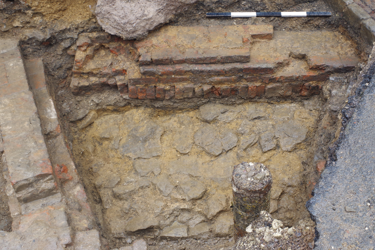 Remains associated with the post-medieval use of the castle as a gaol were also found. These include the foundations of possible gatehouse depicted on Kip’s 1712 Prospect of Gloucester, and brick footings that probably formed part of a c. 1650 bridewell. This type of institution, also known as a ‘house of correction’, was built following the passing of the Elizabethan Poor Law, and were designed to hold petty criminals, vagrants, beggars, and those of ‘loose, idle and disorderly conduct’ for short periods of time. The inmates, two thirds of whom were female, were often sentenced to whipping and most were expected do hard labour.