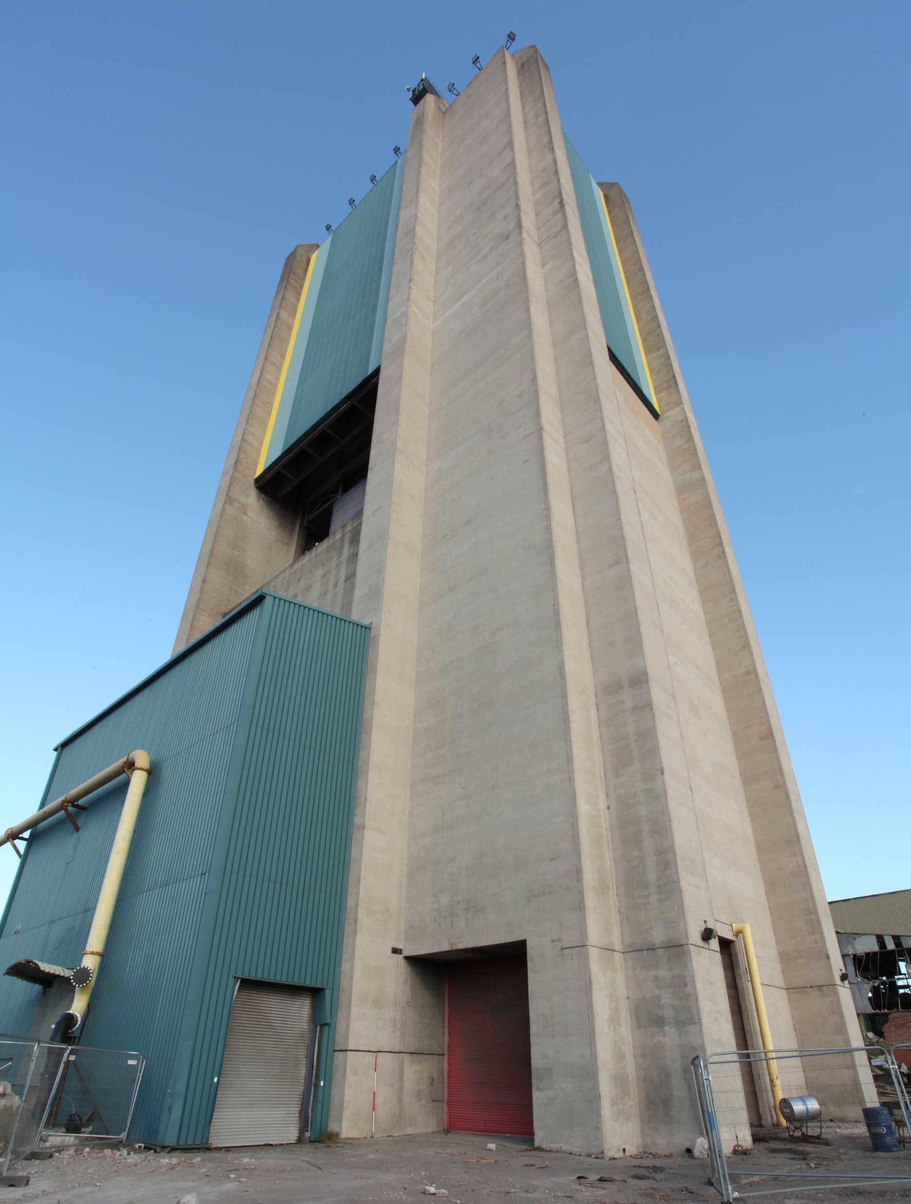 Both the Power House and Number 1 Winding Tower were recorded by the built heritage team prior to their demolition. The Winding Tower, constructed in 1989, was a huge and important landmark in the area, visible from miles around, dominating the landscape. The Tower demonstrated ingenuity of design whereby it had to be constructed around and over the original headgear without interrupting the continuous coal winding operations, allowing the removal of the redundant gear and commissioning of the new tower, all during a three week holiday period. Its great structural advantage was its cellular design which provided walls of considerable strength to withstand suction from ventilation fans in upcast shafts, with the economy of materials. The Tower in fact received a commendation in the 1990 Civic Trust awards.