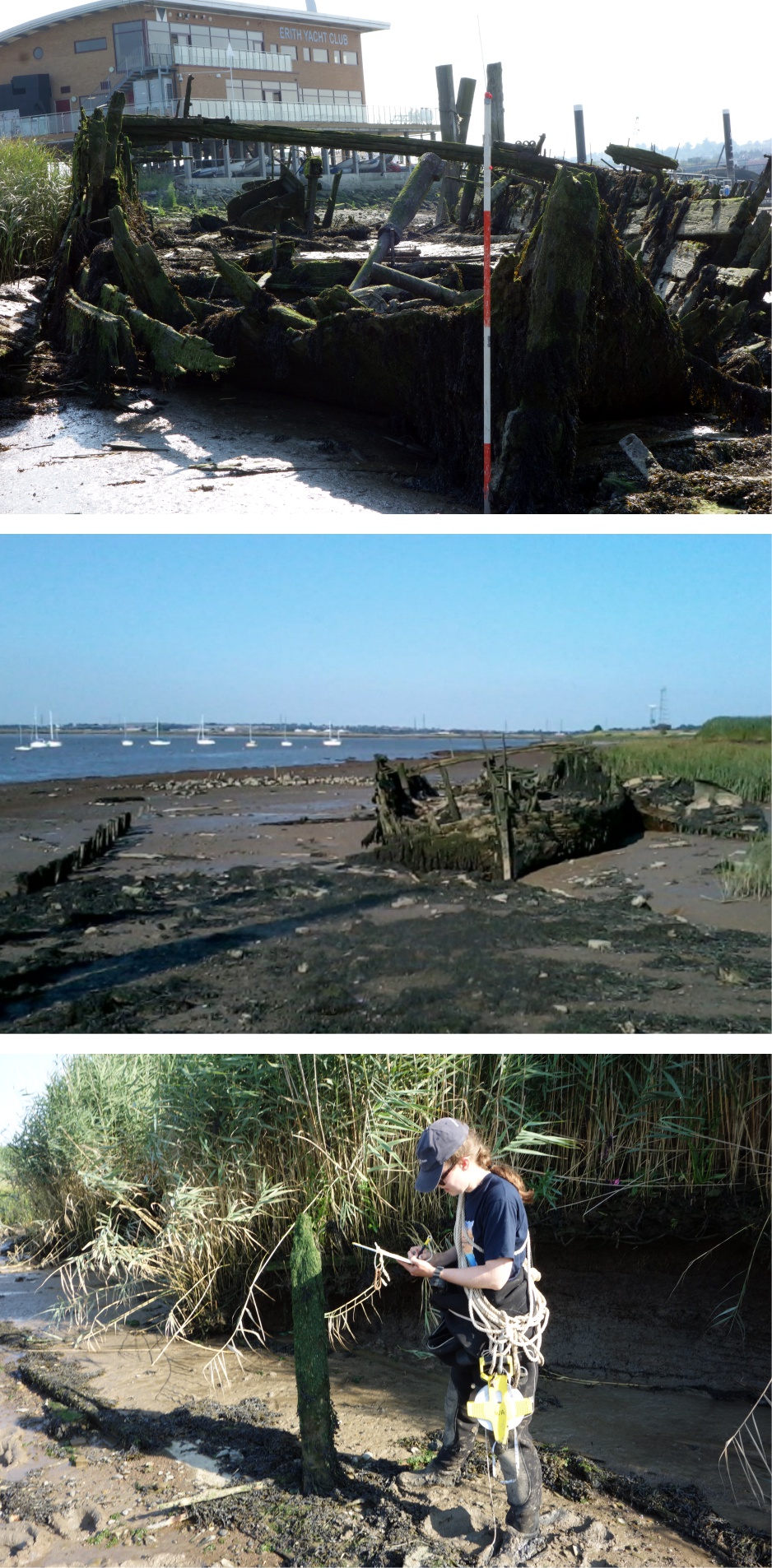 After experiencing high winds and seas, that made it impossible for us to carry out a planned diving survey in the outer Thames Estuary, Wessex Archaeology’s Coastal & Marine team had the fortuitous opportunity to undertake a rapid assessment of a cluster of eight threatened historic wooden hulks and structures in an area of the estuary known as 'The Saltings', south and adjacent to the Erith Yacht Club.