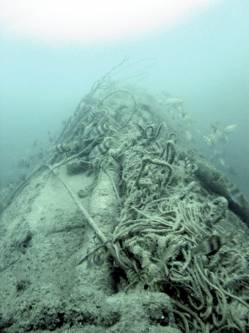 In 2007 Wessex Archaeology conducted a condition survey of the wreck, and noted that the chain for the marker buoy was in danger of coming into contact with the wreck and causing damage to it. Whilst on the site Wessex Archaeology's divers obtained a large amount of photographic data which show the extent to which the site is under threat from fishing nets that have become entangled with the wreck. A copy of the full report of Wessex Archaeology's investigations can be downloaded as a .pdf below. INSERT PDF REPORT LINK INSERT_MAP