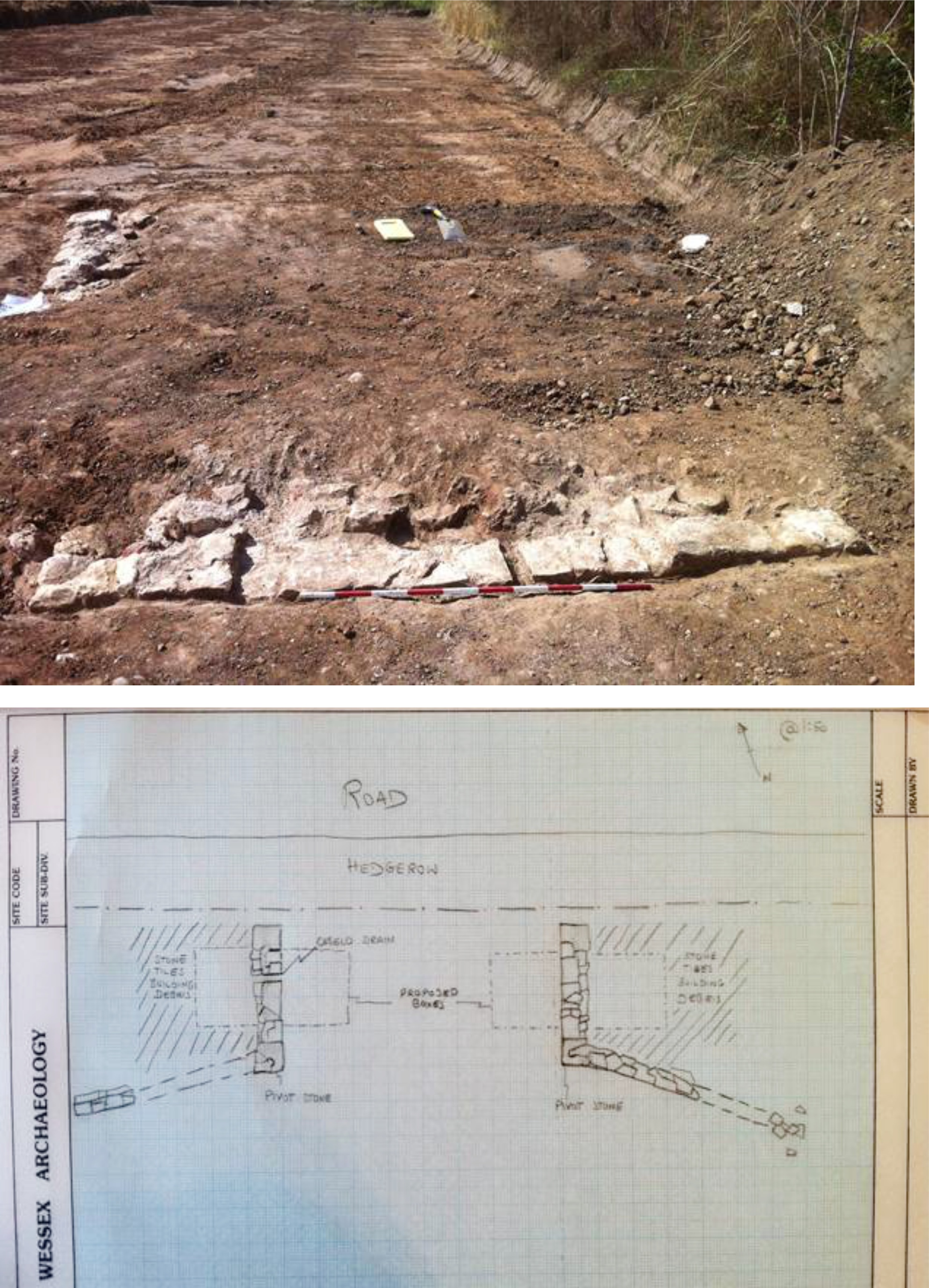 The most surprising discovery though was two stone walls adjacent to the Kelham Road. Angled to lead away from the main road, they seem to be the base of a gateway. Once the walls were found we were given plenty of time to investigate and record the walls properly and Laing O’Rourke’s engineers modified the pipeline route to avoid the walls, so that they can be reburied and preserved.