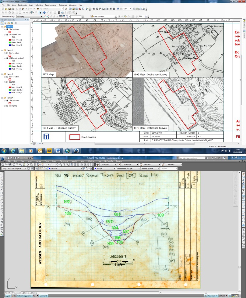 I have been learning and practising using AutoCad and ArcGIS by digitising and drawing various profiles, site sections, skeletons and historic maps. I am getting used to the programmes, and the other day I was told – to my great surprise – that the graphics I had drawn had been used in a client report. This made me feel really pleased, and even rather amazed, that even in the first few weeks, and having never used AutoCad before, the graphics I had produced had actually been used in a professional capacity. This has given me a much needed confidence boost, and has spurred me on to keep practising and doing the best I can with the projects I am working on.