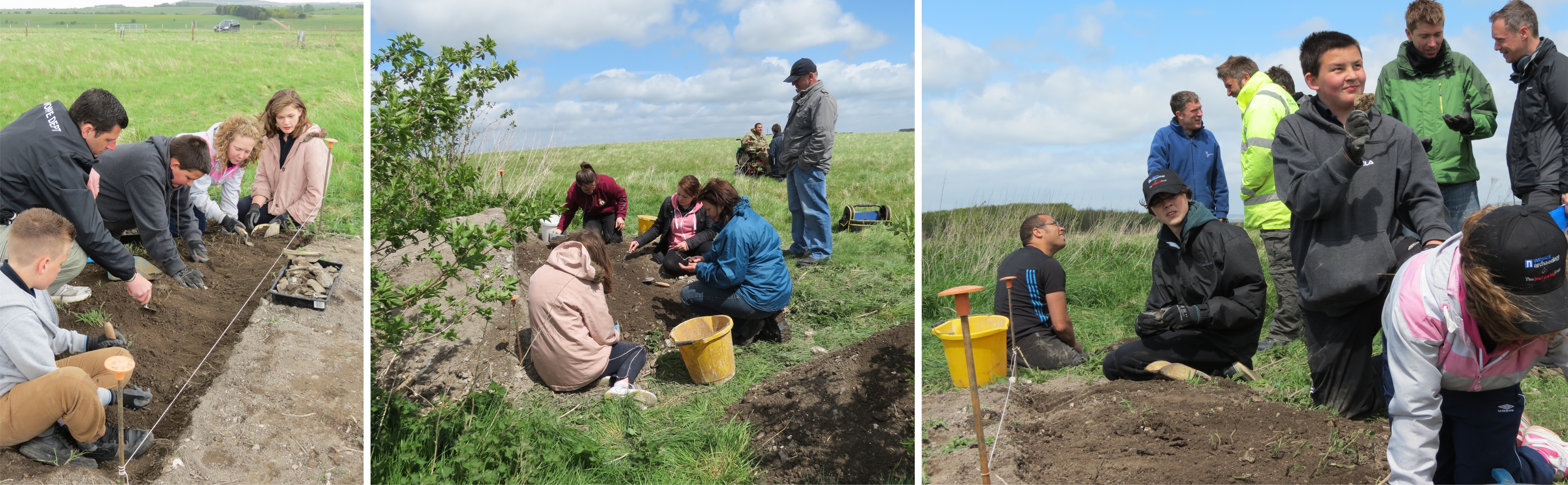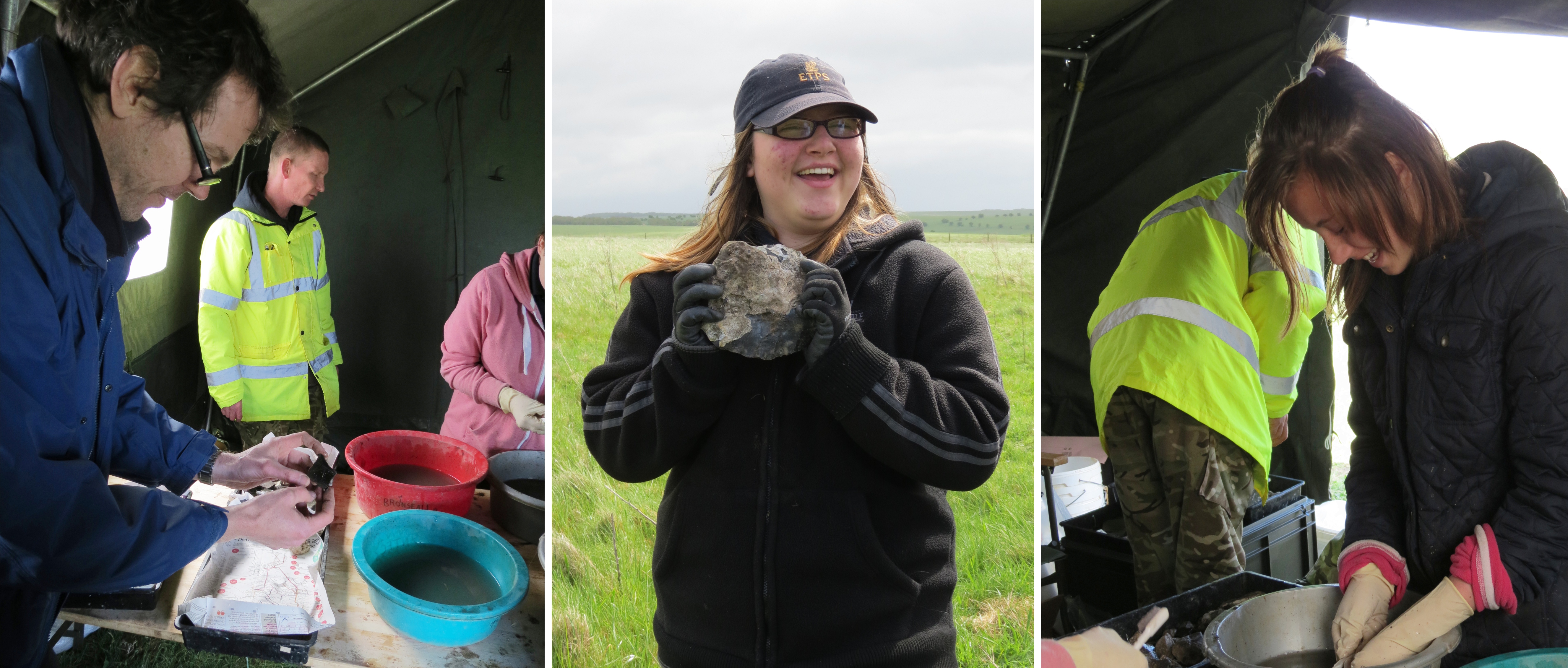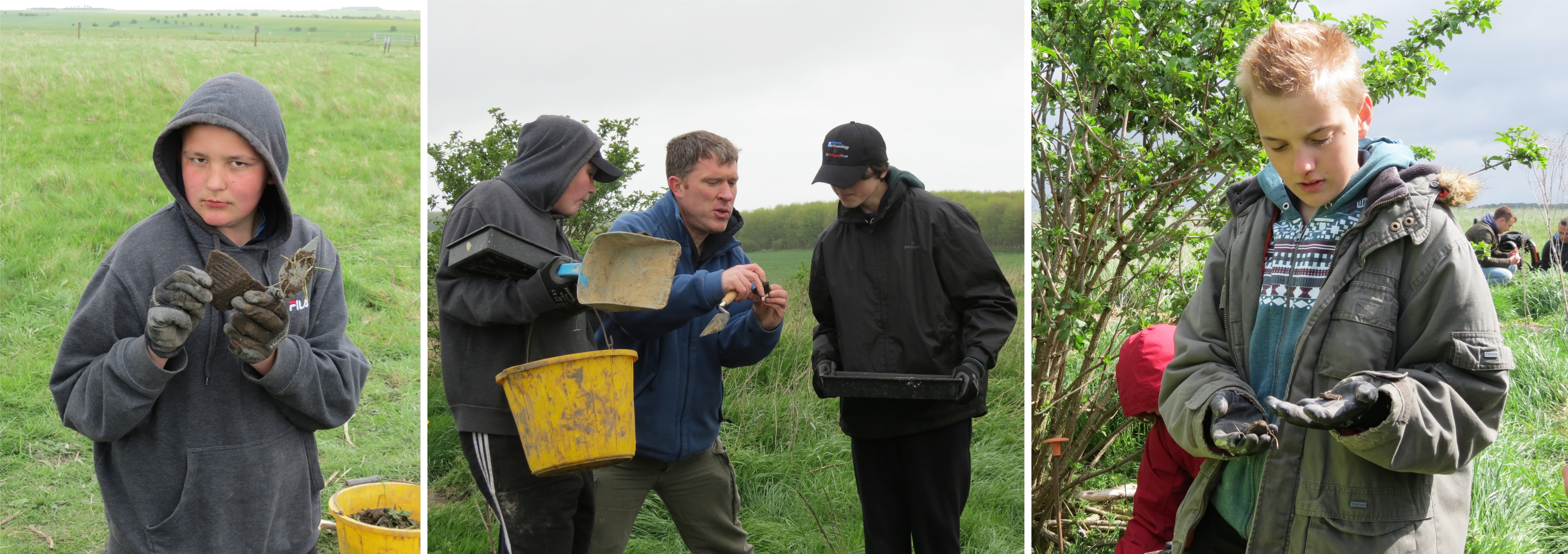 On Friday morning (10th May 2013) an eager group of Jon Egging Trust representatives, students, teachers, archaeologists, volunteers and military personnel gathered on a windswept Salisbury Plain for the second archaeology-themed session of the Jon Egging Trust Blue Skies programme. The event was set-up by Richard Osgood, Senior Historic Advisor for the Defence Infrastructure Organisation (DIO) in consultation with Wessex Archaeology (WA), and took place at the c. 2700 year old midden site close to East Chisenbury.