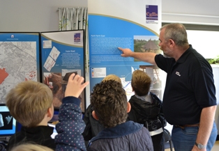 The exhibition was launched on Friday morning when 90 children from local schools arrived and took part in interactive archaeology workshops. Pupils were introduced to the exhibition using a heritage trail designed by WA’s Community & Education Officer, and went on to take part in a range of exciting activities. The sessions were very well received and positive feedback was heard from both students and teachers. Friday afternoon saw the arrival of Ashford’s local dignitaries, including the Mayor of Ashford, Cllr David Smith, all of whom were interested to learn more about Ashford’s hidden past.