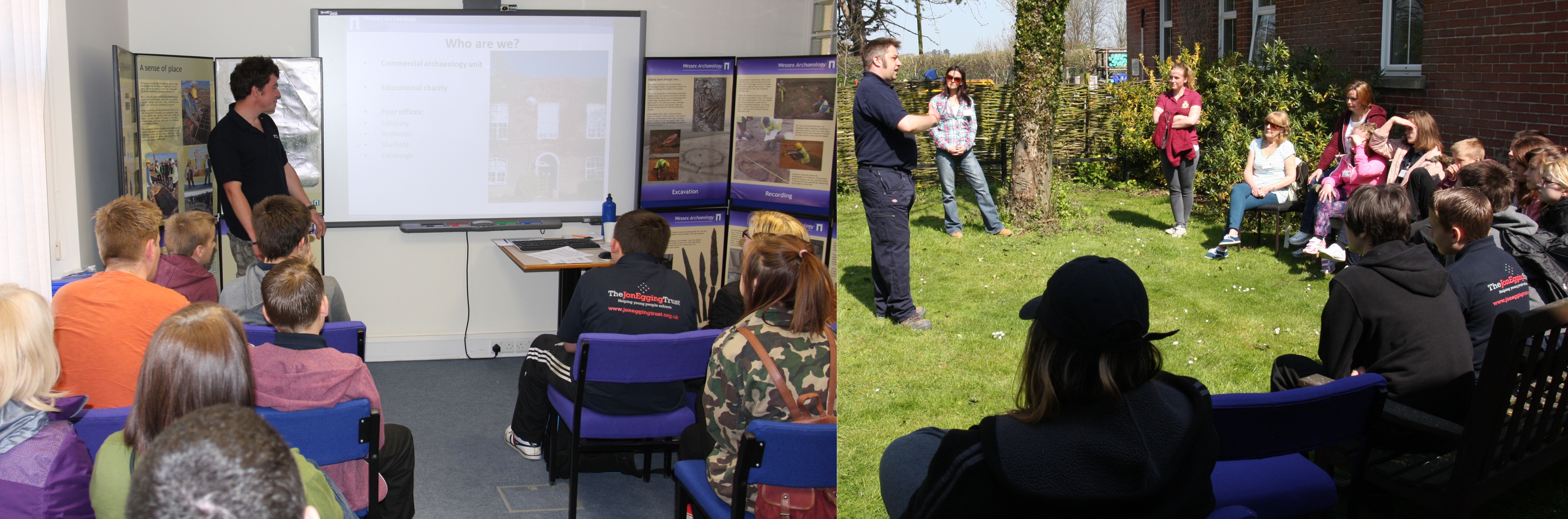 On a sunny Thursday 2nd May the students participating in the Jon Egging Trust Blue Skies programme (Bournemouth) visited the Salisbury office to learn about what archaeology is, who archaeologists are, and how such a diverse range of people and skills come together to work towards a successful outcome.