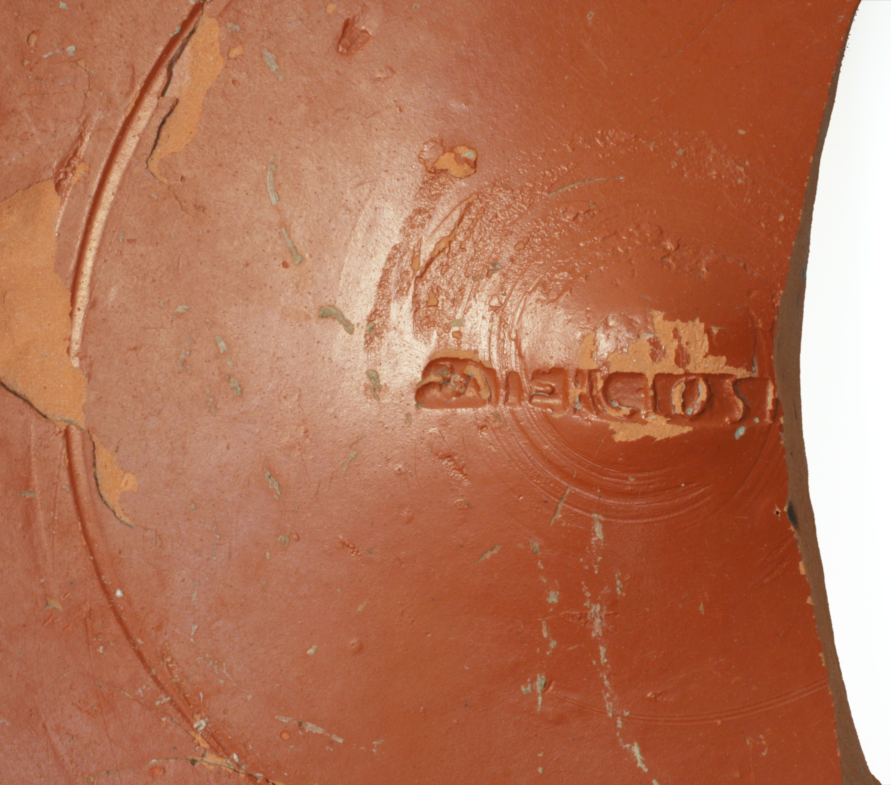 One of the pieces of samian (a form 18/31 dish) is stamped - by Paterclos ii, a potter who worked at Les Martres de Veyre, where this vessel was made, and then at Lezoux (both near modern Clermont-Ferrand in the Auvergne, France), during the first half of the 2nd century AD.