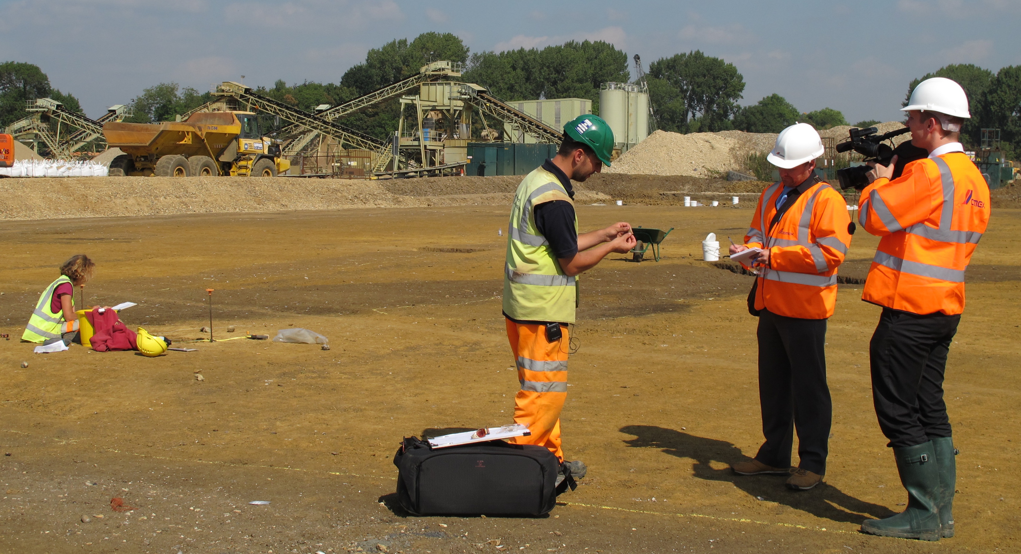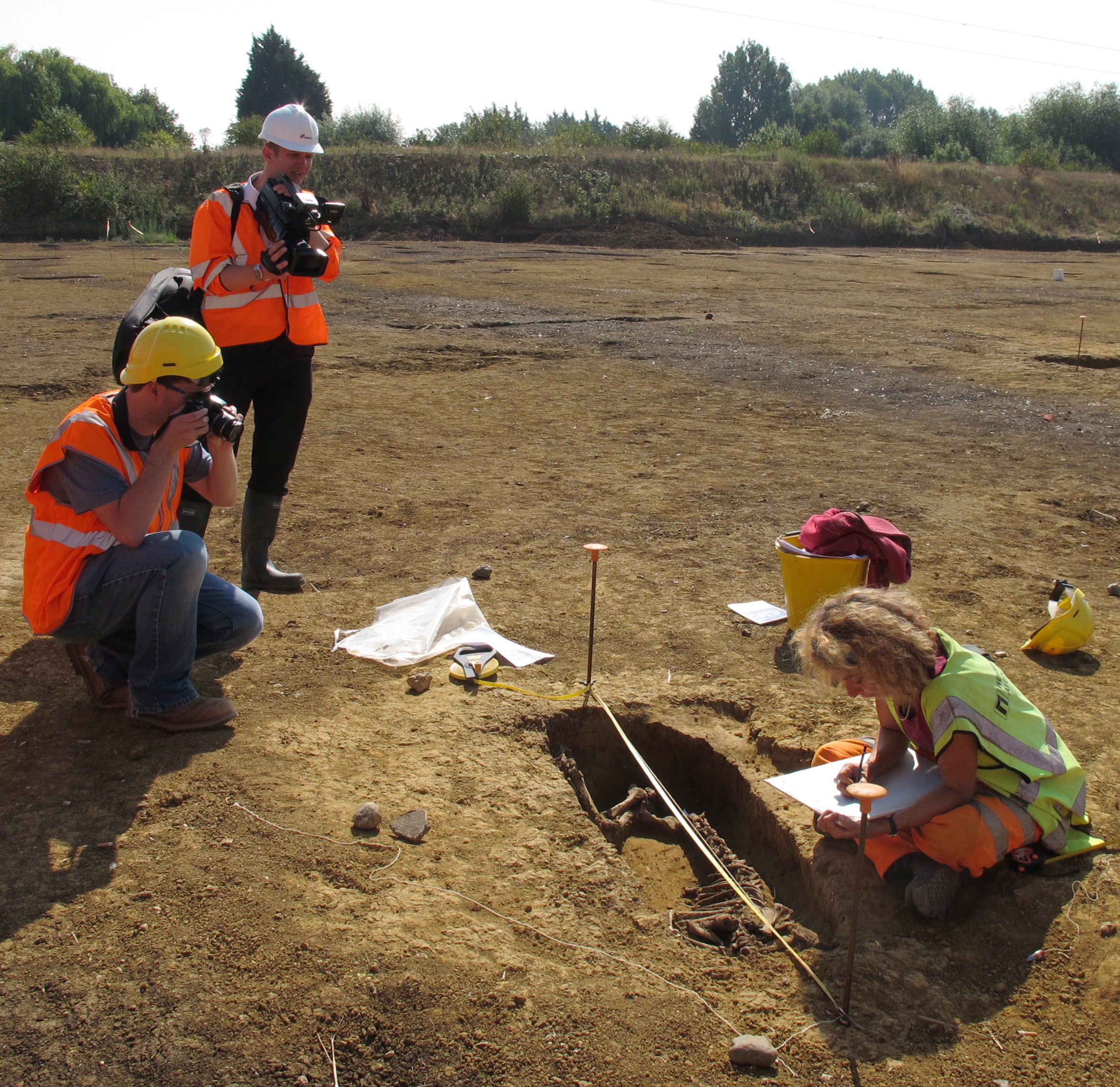 Some of the recent discoveries from the 2013 excavations are reported in the latest Windsor Express. These include the excavation of a Bronze Age (1500 BC) farmstead and fields, and another section of the Romano-British farm that was investigated in previous years. These discoveries are helping to build a picture of how the landscape developed over the last 10,000 years, of how people lived and how they farmed the land. This year we have found a small number of graves of the people that lived in the two settlements. Just like today some people were buried in graves and others were cremated.