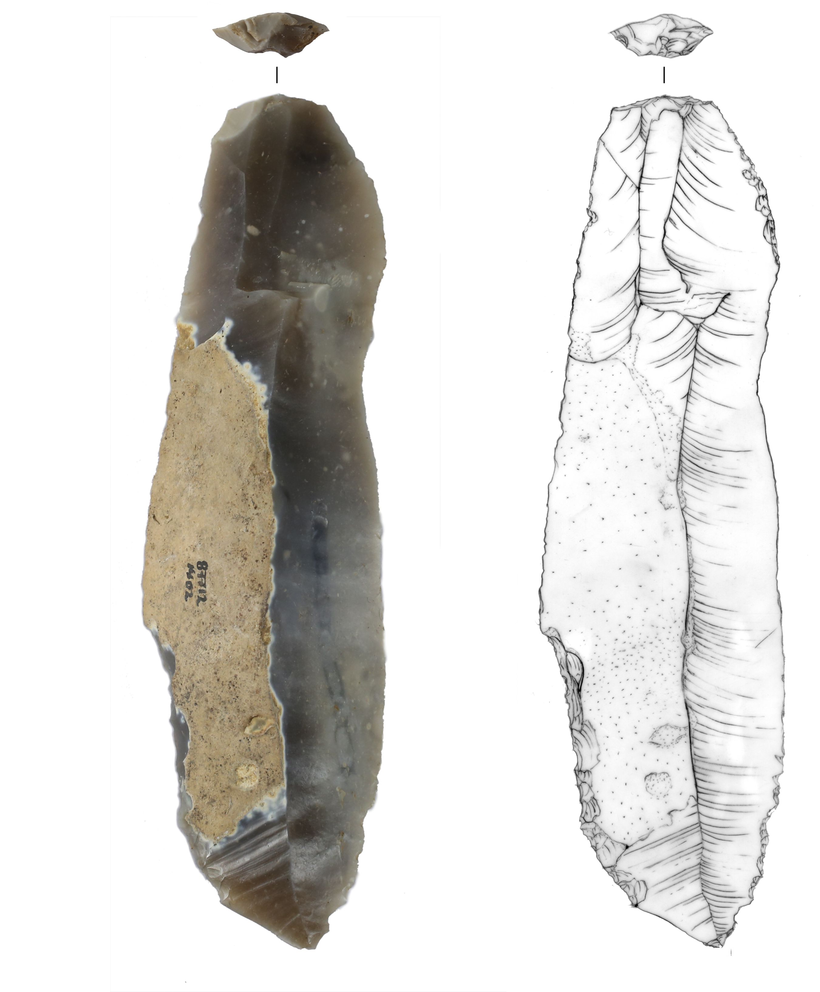 This beautiful 'Long Blade' from Crowdhill near Eastleigh in Hampshire was probably made by a member of a small band of hunters who lived about 10,000 years ago.