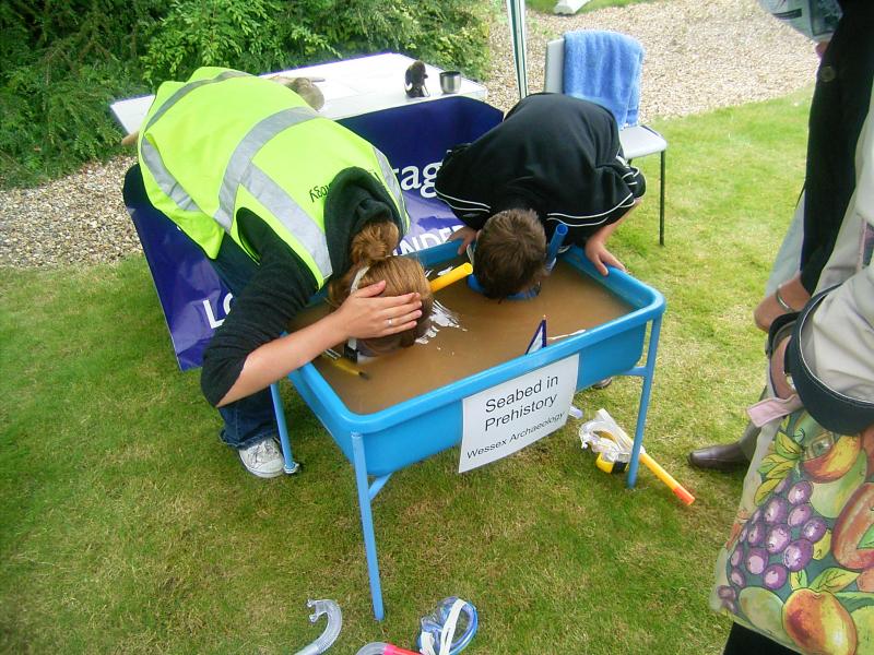Despite big black clouds and the occasional spot of rain, National Archaeology Day at Salisbury Museum was a big success again this year. More than 670 visitors enjoyed a wide variety of family activities from making pots to building Stonehenge. There was even an opportunity to go snorkelling underwater for finds! Visitors were fascinated by Neil Burridge’s demonstration of Bronze Age metal-working while children enjoyed helping Julian Richards build a huge Stonehenge trilithon.