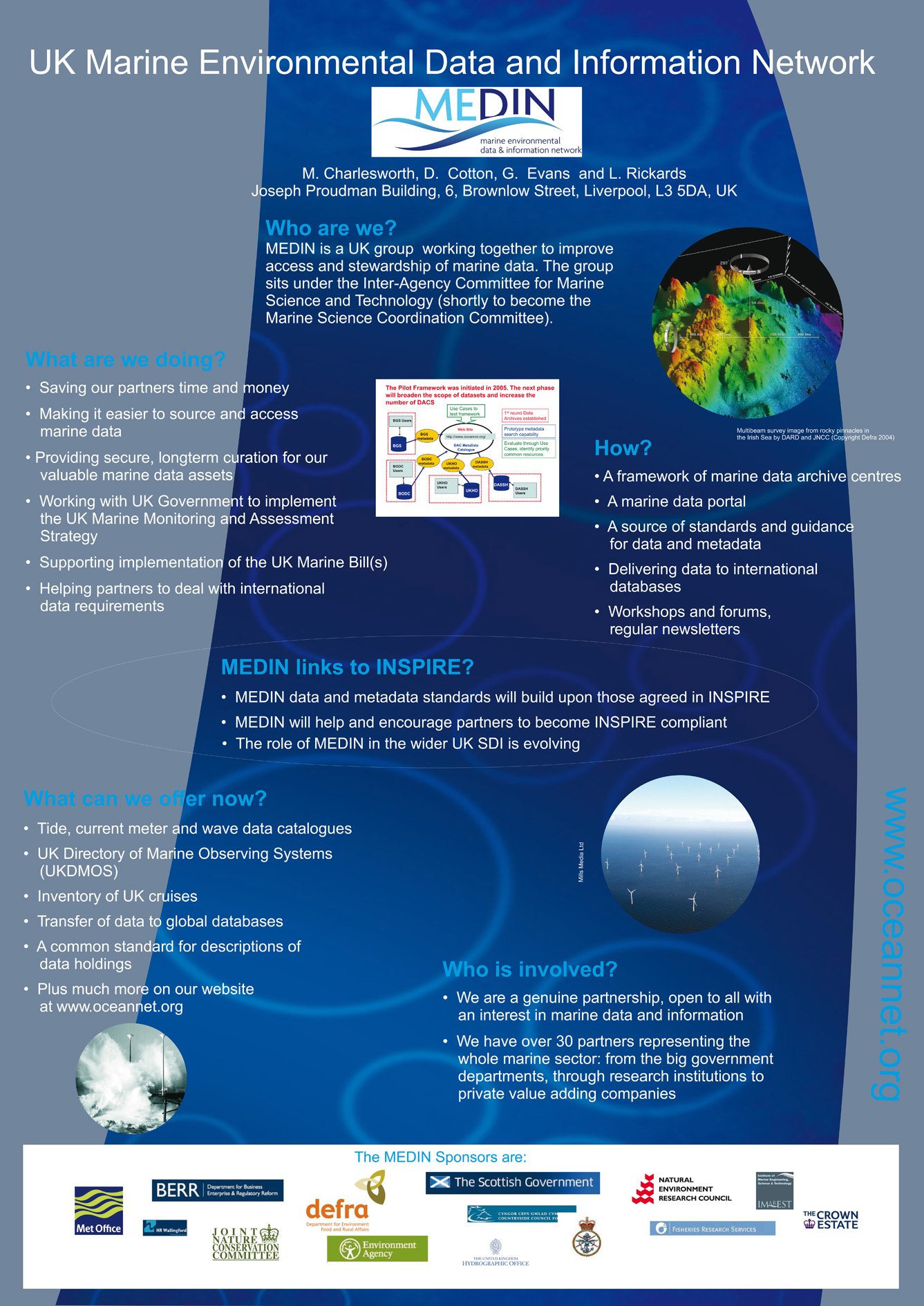 The meeting provided the opportunity to contribute to the discussions on how metadata and data standards are being implemented throughout the marine disciplines, including archaeology, and the developments of the MEDIN portal for accessing discovery metadata.