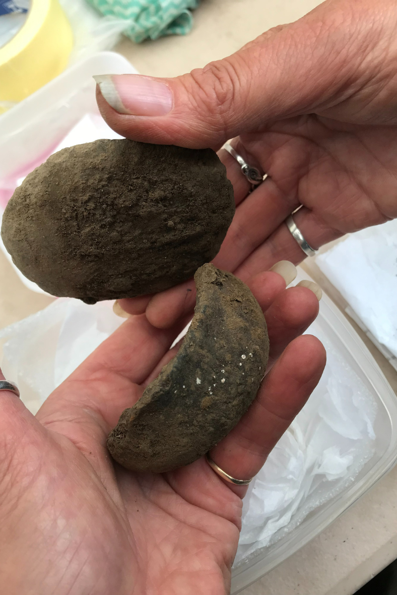 So far this year three pig skulls and two piglets have been found in this area of the site (hence the ‘House of Pigs’)., and Dr. Bond assures us that pigs were rare here in the Iron Age/Pictish period – unlike other animals (cattle and sheep), their only purpose was to provide meat. This made pigs something of a luxury/indulgence; might this, like the ‘posh’ corridor walls, indicate the high status of the site? The number of hearths of a non-domestic as well as domestic nature uncovered on the site to date suggest it might have been an ‘industrial’ centre in the Iron Age … the home of skilled specialists.