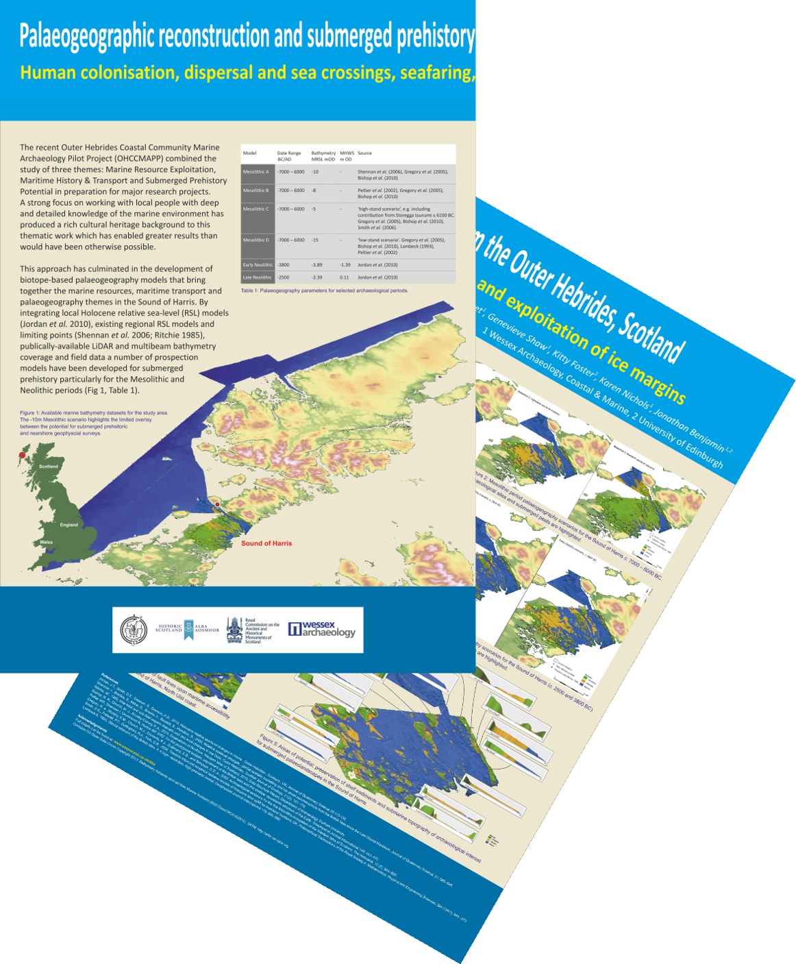 At the SPLASHCOS conference this year, WA Coastal & Marine presented a poster on palaeogeographical reconstructions undertaken during the OHCCMAPP. Using freely-available geophysics datasets the team were able to identify areas of potential for the preservation of submerged palaeolandscapes particularly around the Sound of Harris. The research is now in the process of publication and follow-up work is planned.