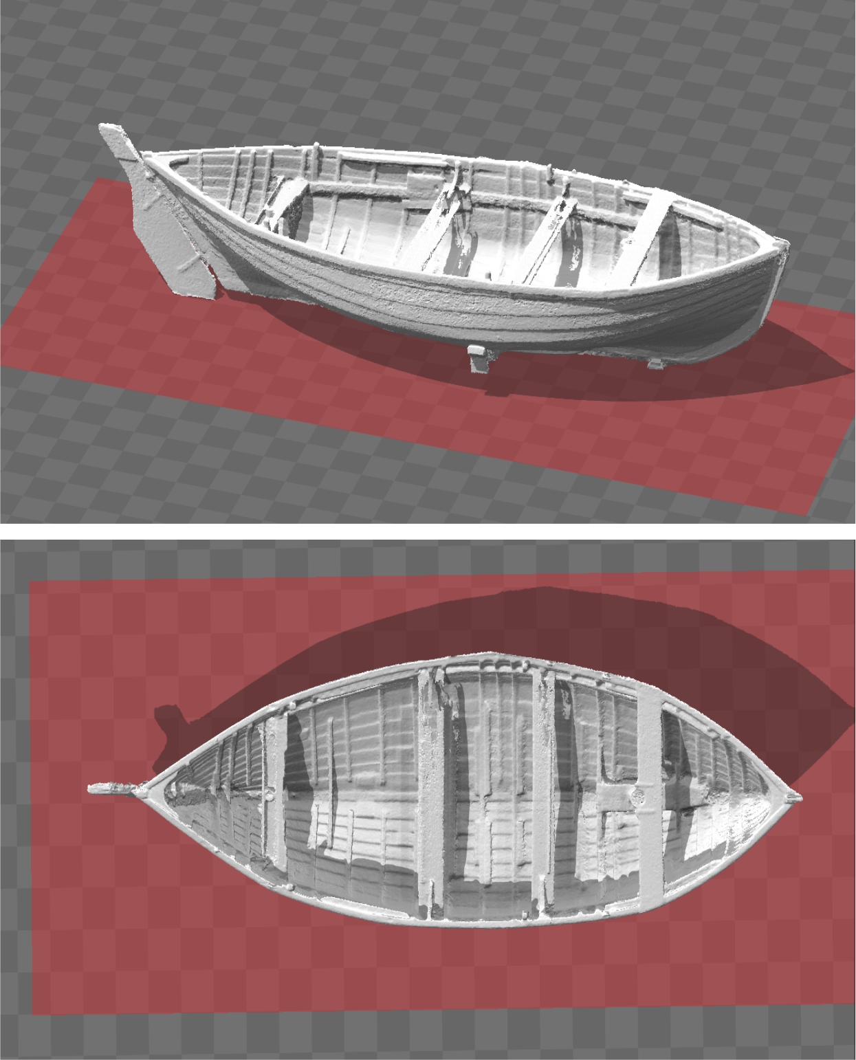 Even where no previous plans exist, as with the Maggie, it is clear from the model that this vessel has had a tough working life, with the shape in plan being slightly twisted and multiple repairs being obvious. It is vitally important to note these adaptations and changes prior to further conservation work being completed, so that an accurate understanding of the vessel’s fabric is known.