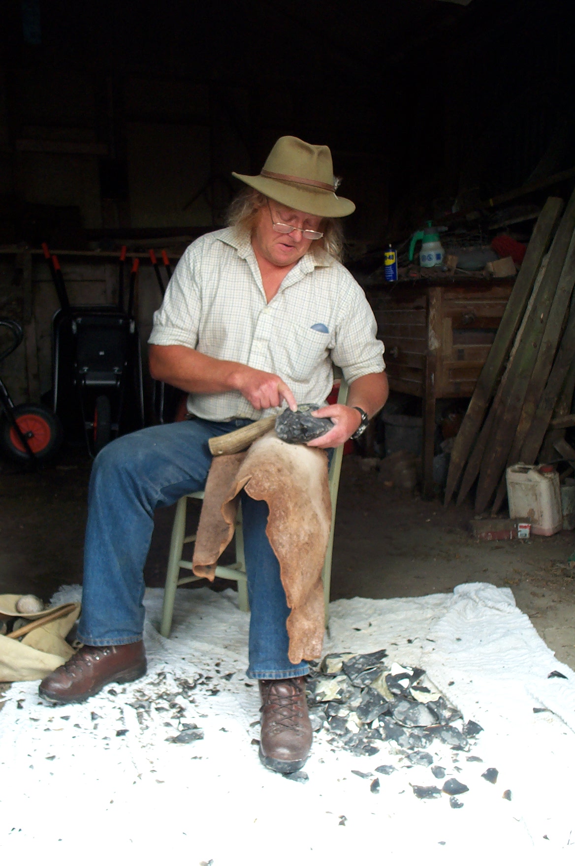 At lunchtime we were joined by Phil Harding from Time Team (who is also a Project Officer for Wessex Archaeology) and he gave an impromptu demonstration of flint knapping techniques. Within a short space of time he had knapped a large piece of flint and had begun to shape a handaxe. It was good for us to learn how some of the flints we have found on site had been created, though it was generally agreed that Phil made knapping look a lot easier than we think it is! Following this we returned to excavate for the last part of the day. Despite the consistent drizzle spirits were high as we left site on the penultimate day of this team’s training week.