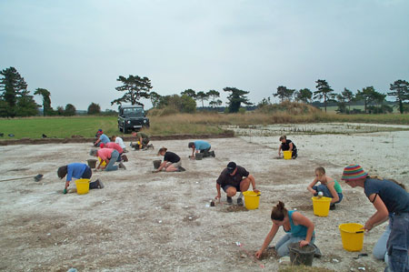 The second week of the 2006 training excavation at Down Farm began with the arrival of fifteen new trainee archaeologists, all from different backgrounds and with varying levels of archaeological experience. The day was structured similarly to last Monday, with introductions to the team and to the site, and a tour of the museum.