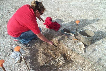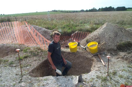 Two of the other students (David and Lee) were excavating quarry hollows, and one of these contains some nice finds including pot sherds and burnt bone. Alex continued to work on the full excavation of the northern terminus of the enclosure ditch. This lies adjacent to a pit (excavated in 2004) which contained an articulated cow burial and we are hoping to find some more interesting deposits in the terminal.