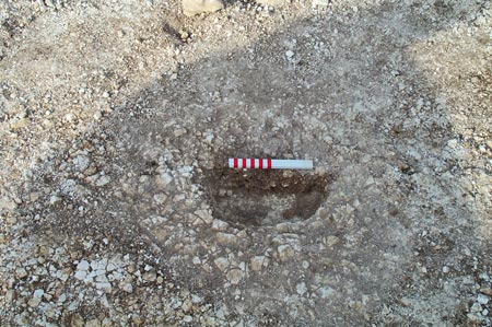 The two post-holes that appear to form part of the porch structure of the roundhouse both contained evidence of post-pipes – which clearly indicate that the wooden posts they contained had rotted in situ, and were not removed. Both of these posts are rather substantial and they were sampled by Martin Green and Sadie. The charcoal they contain will help us to find out what kind of wood was used to construct the house as well as perhaps providing a radiocarbon determination to give us a more precise date about the chronology of this phase of occupation on the site.