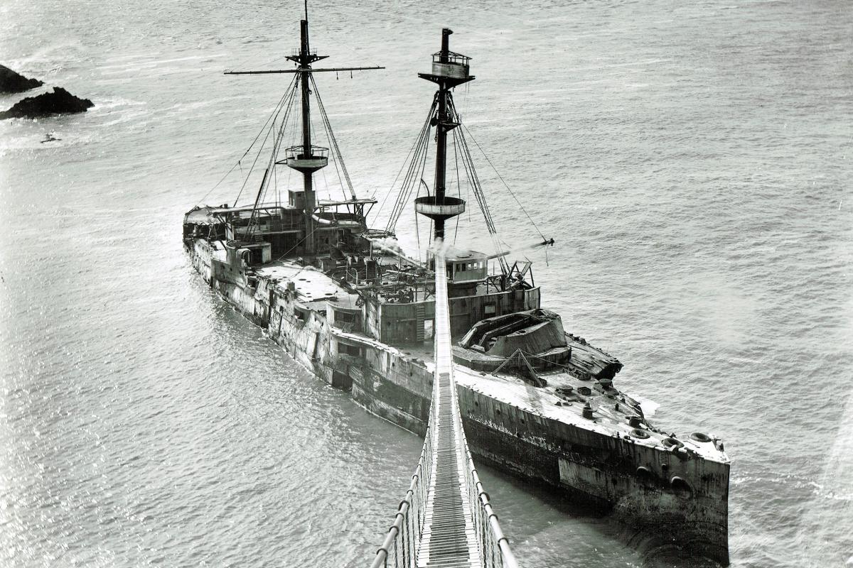 Historic image of HMS Montagu and rope walk for salvage crew. By kind permission of Historic England.