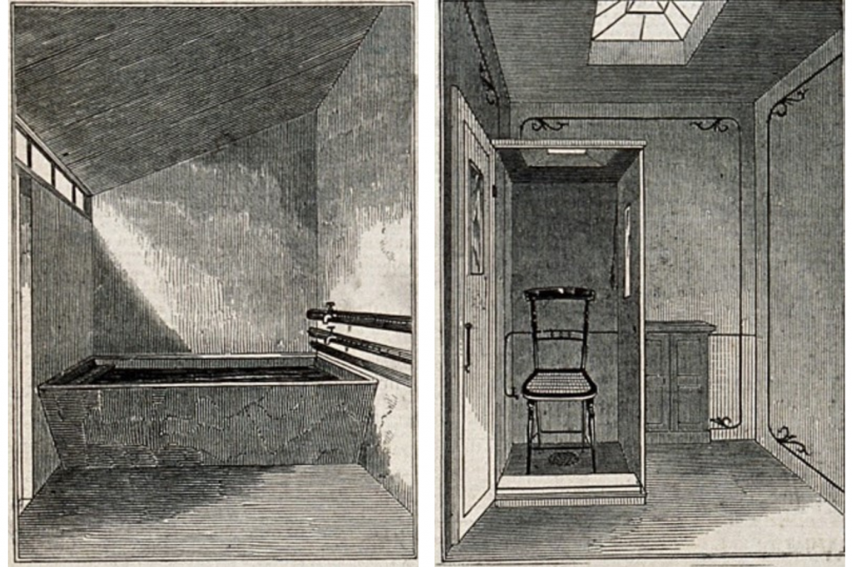 Examples of an 'inferior bath' (left) and a 'superior bath' (right) from engravings of St Pancras Baths and Washouse, featured in The Illustrated London News, 3 January 1846 (© Mary Evans Picture Library)