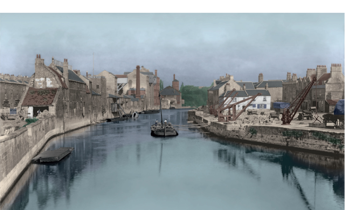 View of the River Avon and Broad Quay from the east, taken by George Love Dafnis in 1892. Colourised by Rob Goller ©B_NES Council