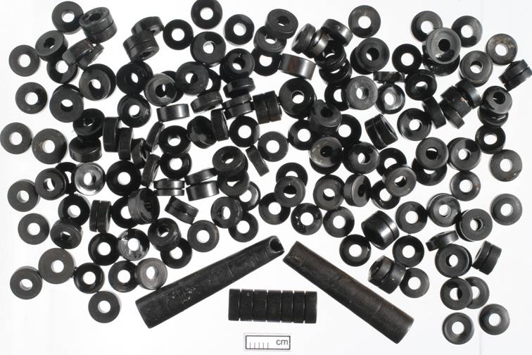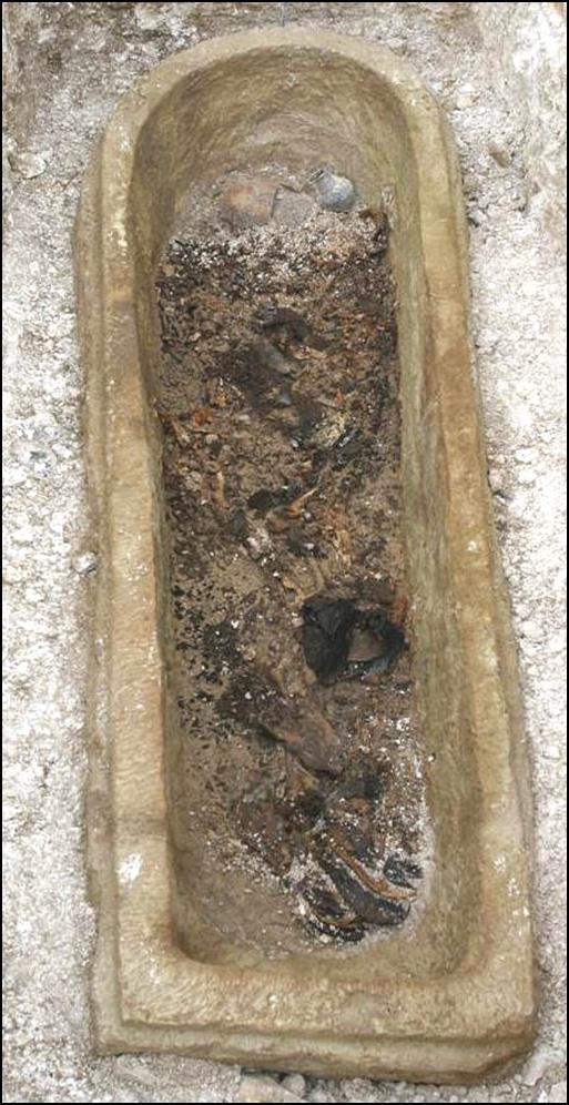The woman also wore a necklace of Whitby jet round her neck, and on her right ankle was a bronze bangle. By her head was a small lustrous pot imported from France which would have contained drink for her journey to the next world.