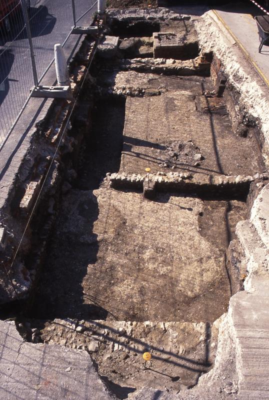 Signs of early activity on the site were marked by a ditch, which produced pottery of 13th or 14th century date. The report thought this might be a boundary ditch, which ran parallel to the street frontage.